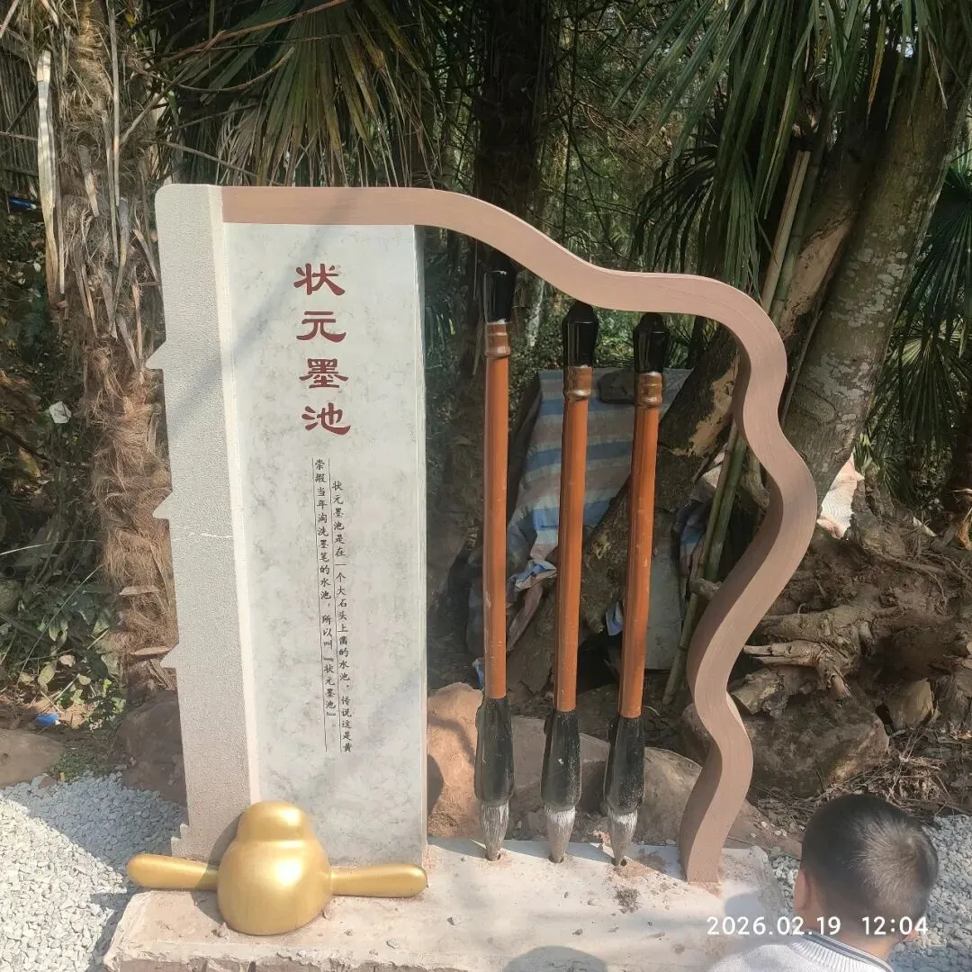 在一块巨石上凿成的水池,传为黄崇嘏当年清洗墨笔之处,故名“状元墨池”。