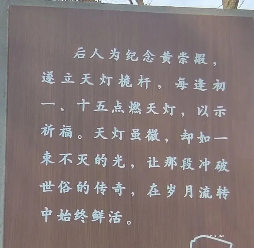 后人为纪念黄崇嘏,立天灯桅杆,每逢初一、十五点燃天灯,以示祈福。天灯虽微,却如一束不灭的光,让那段冲破世俗的传奇在岁月流转中始终鲜活。