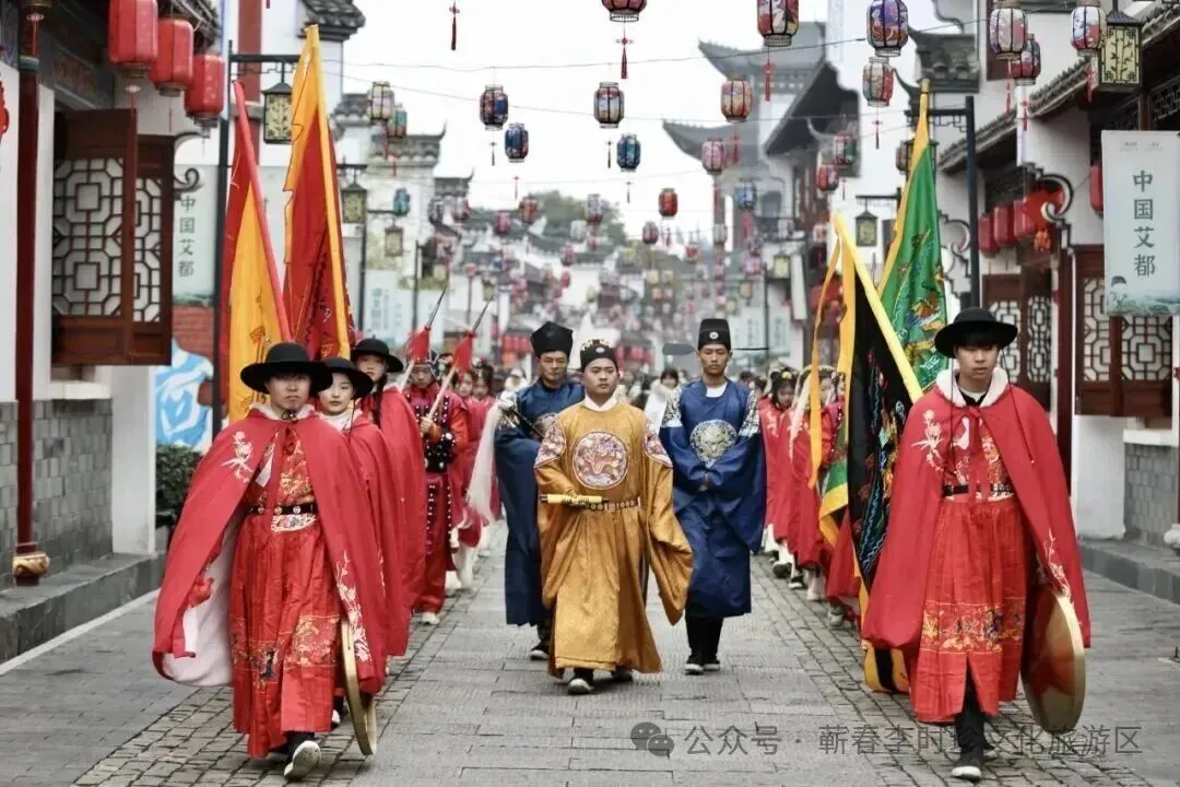 蕲州是明朝荆王封地,每逢重大节日,荆王会出府巡游,与百姓同乐。今年庙会,我们把这段历史搬进蕲艾小镇,请文史专家根据出土文物排练荆王仪仗队,重现当年巡游盛景。