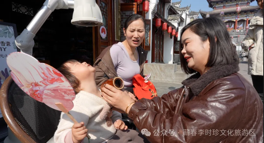 蕲春是李时珍故里,他在这里完成了《本草纲目》。我们把流传至今的民俗“摔药罐”、做艾灸,与“闻香识药”、“纲目寻知”、投壶、夹弹珠等互动游戏相结合,用银票串联整个街区,让游客亲手摸、亲口尝、亲身玩。要的就是这份热热闹闹的年味,要的就是让文化可触可感。