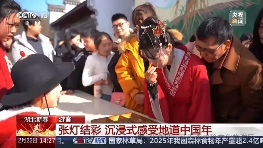 游客们沉浸式游玩体验、参与蕲艾小镇趣味游戏的欢乐瞬间,被清晰定格。央视的聚焦,不仅是对李时珍文化旅游区新春活动的高度认可,更让全国观众领略到这座医药双圣故里独特年俗魅力。