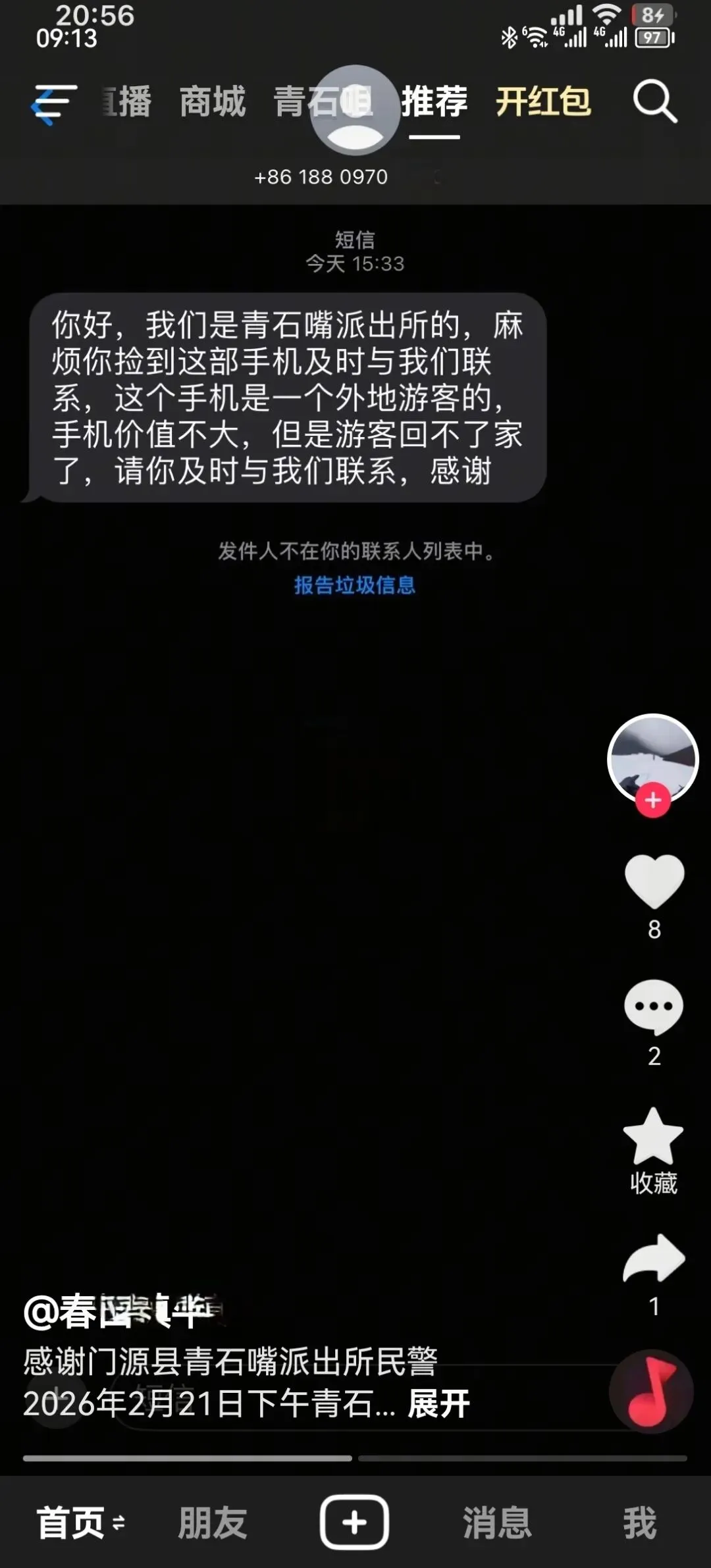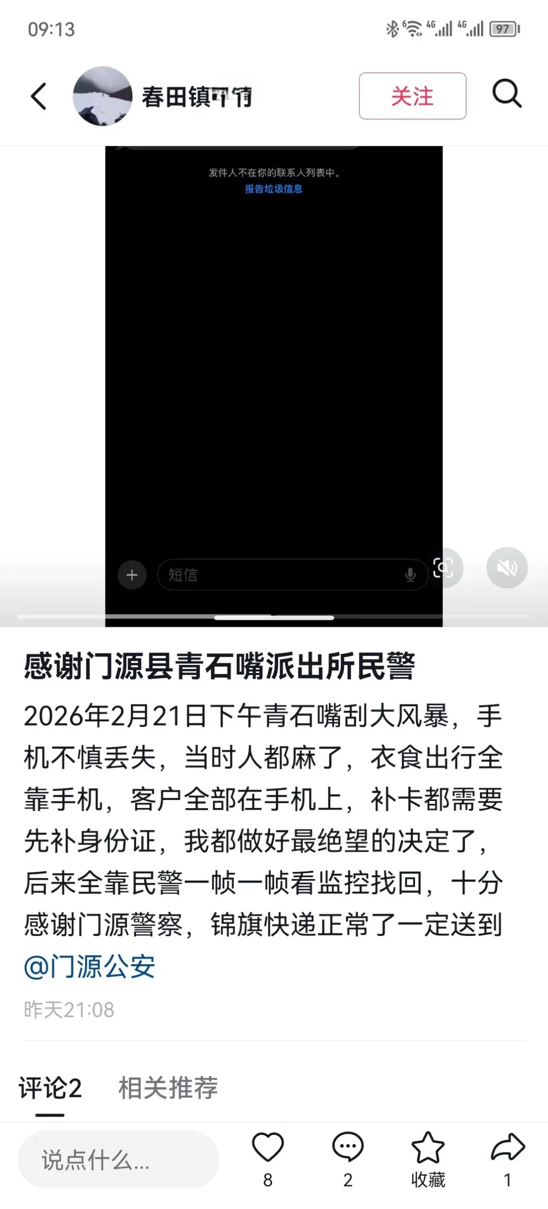 接到求助后,景区民警为解决群众困难,主动担当,面对恶劣天气和复杂的排查环境,他们始终秉持“小事不小看、小事不小办”的服务理念,一头扎进走访排查和监控录像调取工作,逐帧调取监控录像,不放过任何蛛丝马迹;细致排查遗失现场其他游客的衣着特征,反复比对每一个可疑的身影。扬尘中,他们的身影坚定而执着,用一双双布满血丝的眼睛,在海量游客和监控画面中搜寻着关键信息。经过不懈努力,民警们终于成功锁定了手机的去向,并第一时间联系到了捡拾人。当手机失而复得的那一刻,游客的焦虑和绝望瞬间化为暖流。事后,他在社交媒体上发文致谢,对民警“一帧一帧看监控找回手机”的敬业精神和暖心举动致以诚挚谢意。