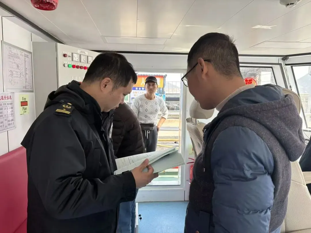 “群众过节,我们过关。”春节后半程,返程客流叠加旅游热潮,水上交通安全风险隐患随之增加。为切实守住安全底线,霞浦海事处主动担当、精准施策,联合上级包保同志分组对辖区客渡运码头、航道、锚地及海岛周边水域开展全方位、无死角巡查。执法人员顶风逐浪,先后巡查重点水域、码头多个点位,仔细检查客渡船救生设备配备、船员值班值守、载客人数核对等情况,重点排查船舶消防、救生及防污染设备隐患,对发现的问题现场指导立行立改,坚决杜绝“带病航行”,用脚步与航程织密海上安全防护网。