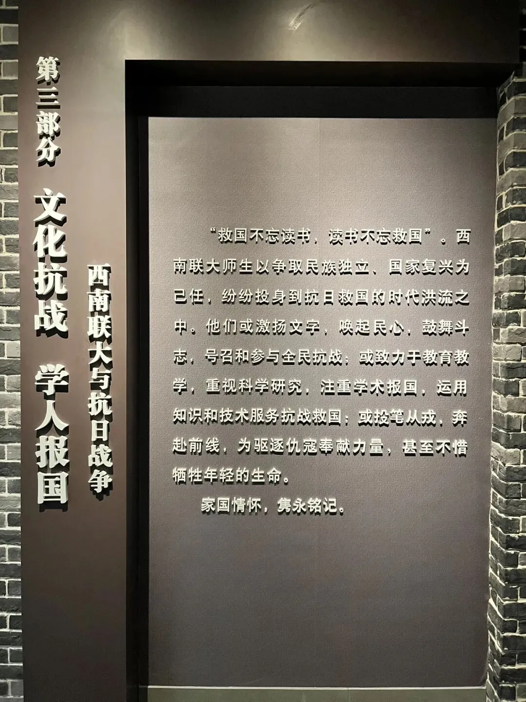 西南联大以“刚毅坚卓”为校训,看到这个校训时,有一种莫名的激动。战火纷飞的年代,国难当头,师生们坚持教育救国、学术报国,艰苦的环境,需要大家坚毅不拔,无私无畏,追求真理,卓然成家但不慕名利,保持谦和与诚信。这样的西南联大精神值得被一代代传承与学习。