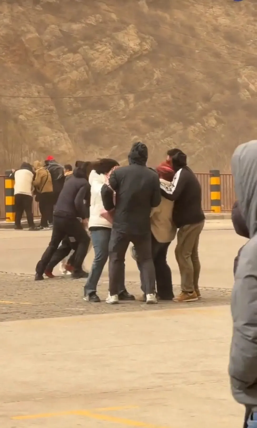 大同恒山景区遭遇极端大风天气,游客被吹得走不动道