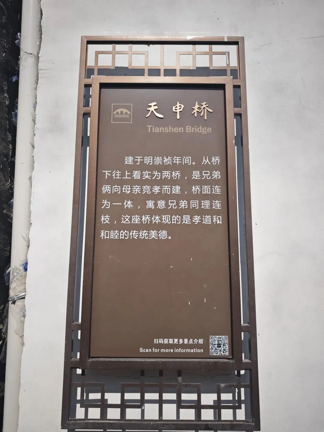 天申桥,走到桥面就觉得特别宽,原来是兄弟二人为孝敬父母,争着为父母建桥。