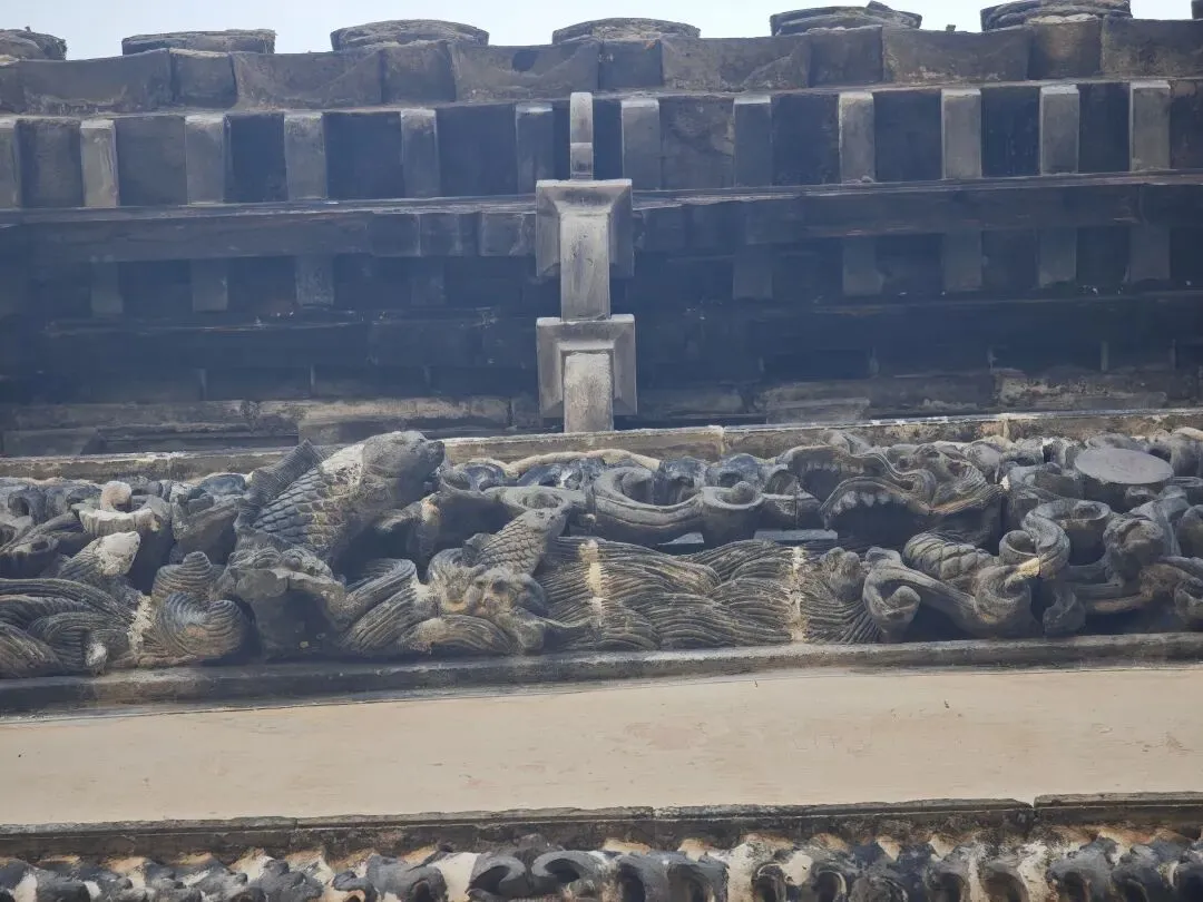 一、德公厅屋,元代建筑 比较少见,门口有三层砖雕,两层被破坏了,顶层的鲤鱼跃龙门,还是能看出来的,说明主人已经是跨越了阶层。