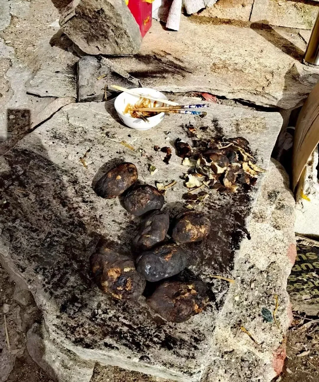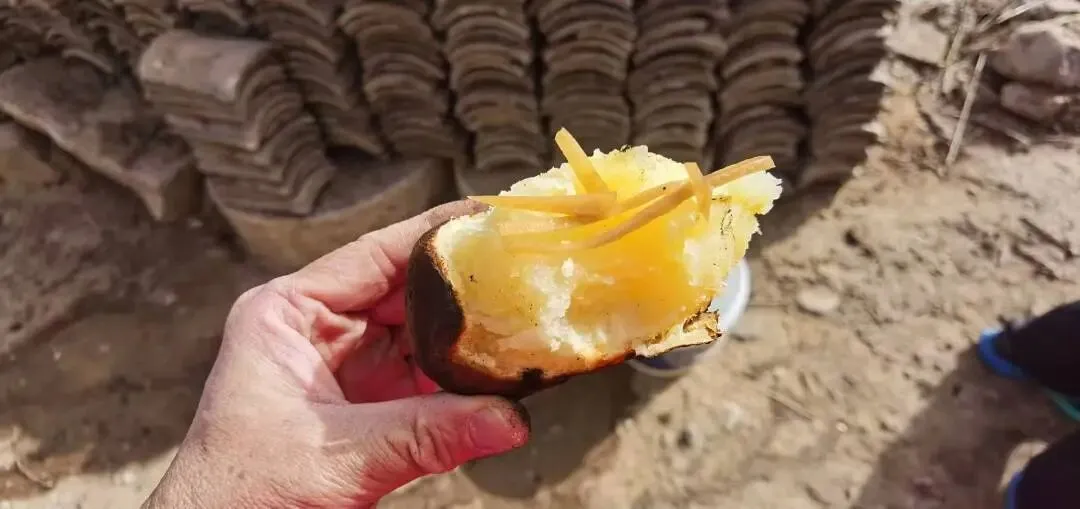 期间遇到一户村民在院子里烧土豆,一时嘴馋,便厚着脸皮讨了一个现场品尝。然后受到了村民的热情邀请,品尝了他们自家腌制的咸菜丝。临走时,村民还特意给我装了两个土豆,这份淳朴的热情成了此次探路最温暖的收获。