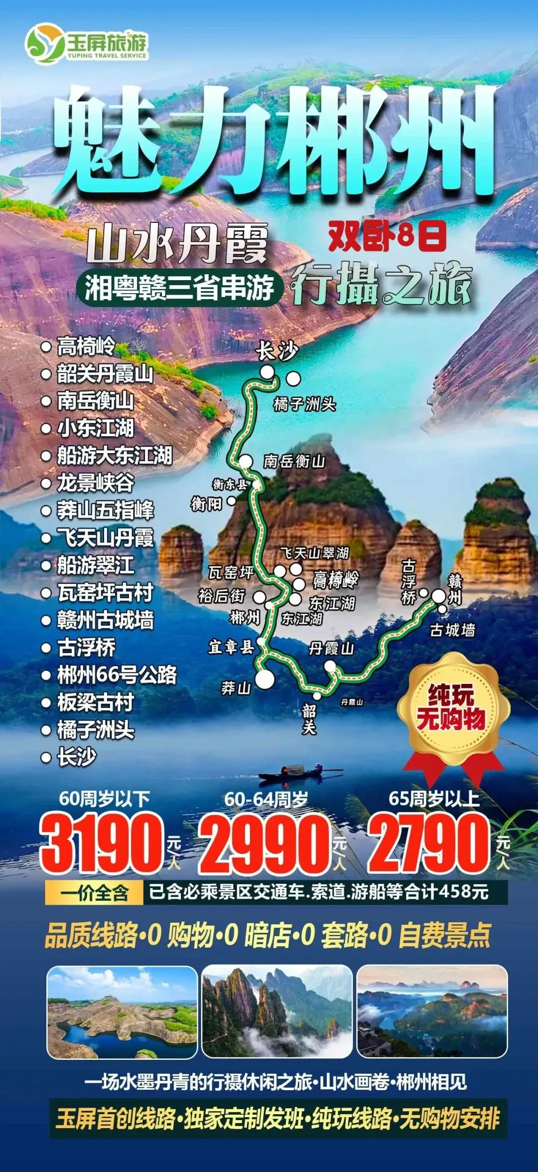 国内精品自组班 09.魅力郴州双卧8日 发班日期:3月16日、4月19日 纯玩无购物