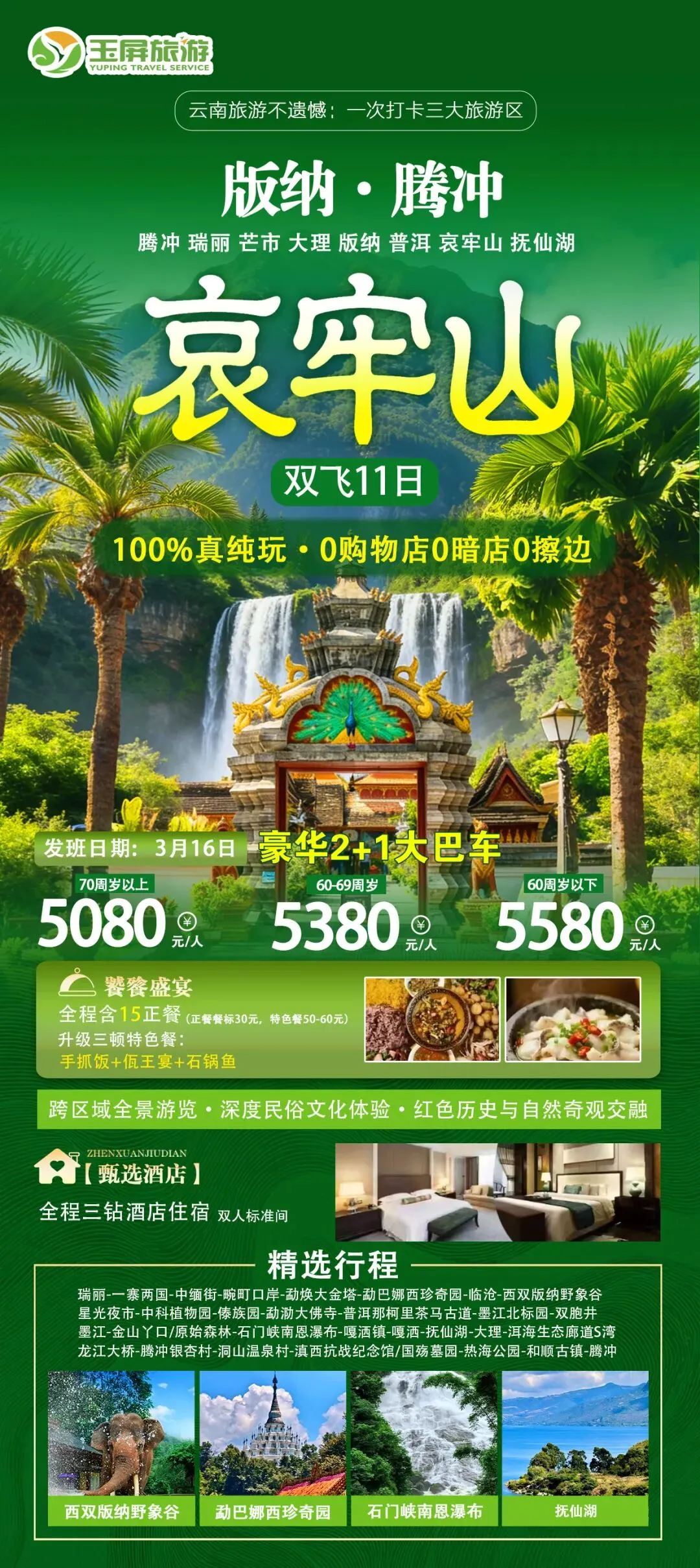 10.腾冲版纳哀牢山双飞11日 发班日期:3月16日(🈵) 4月8日 纯玩无购物