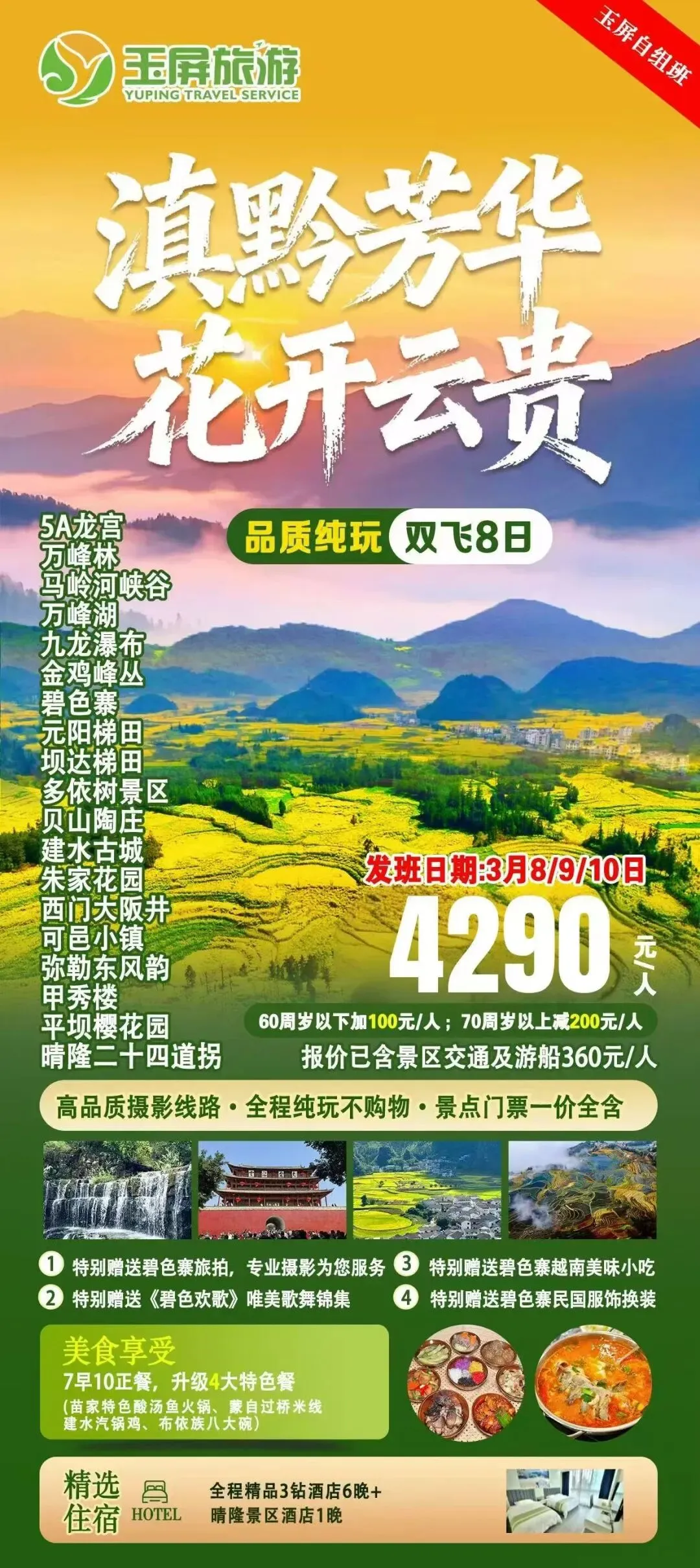 11.滇黔芳华 花开云贵 双飞8日 发班日期:3月8日 纯玩无购物