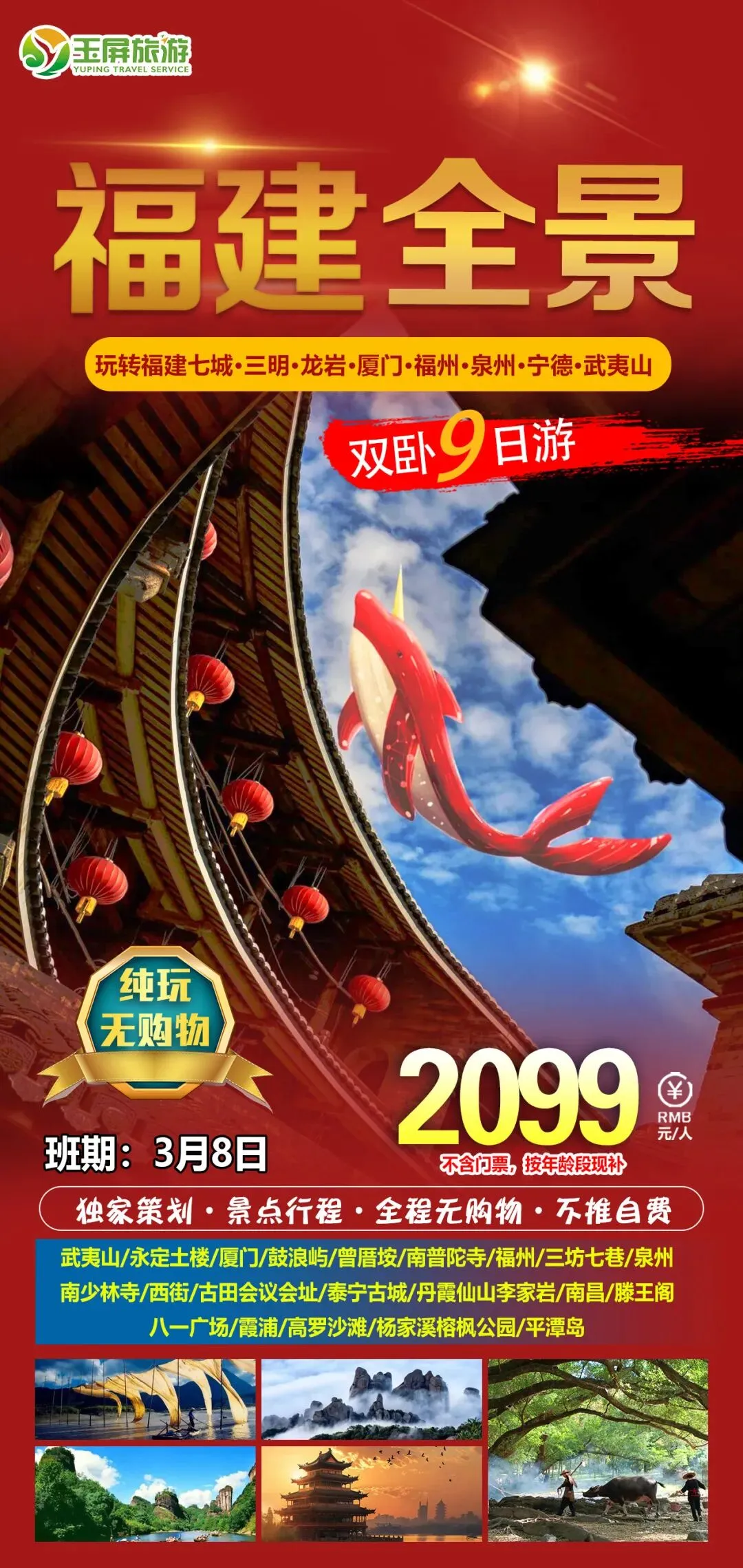 12.福建全景双卧9日 发班日期:3月8日、16日 纯玩无购物