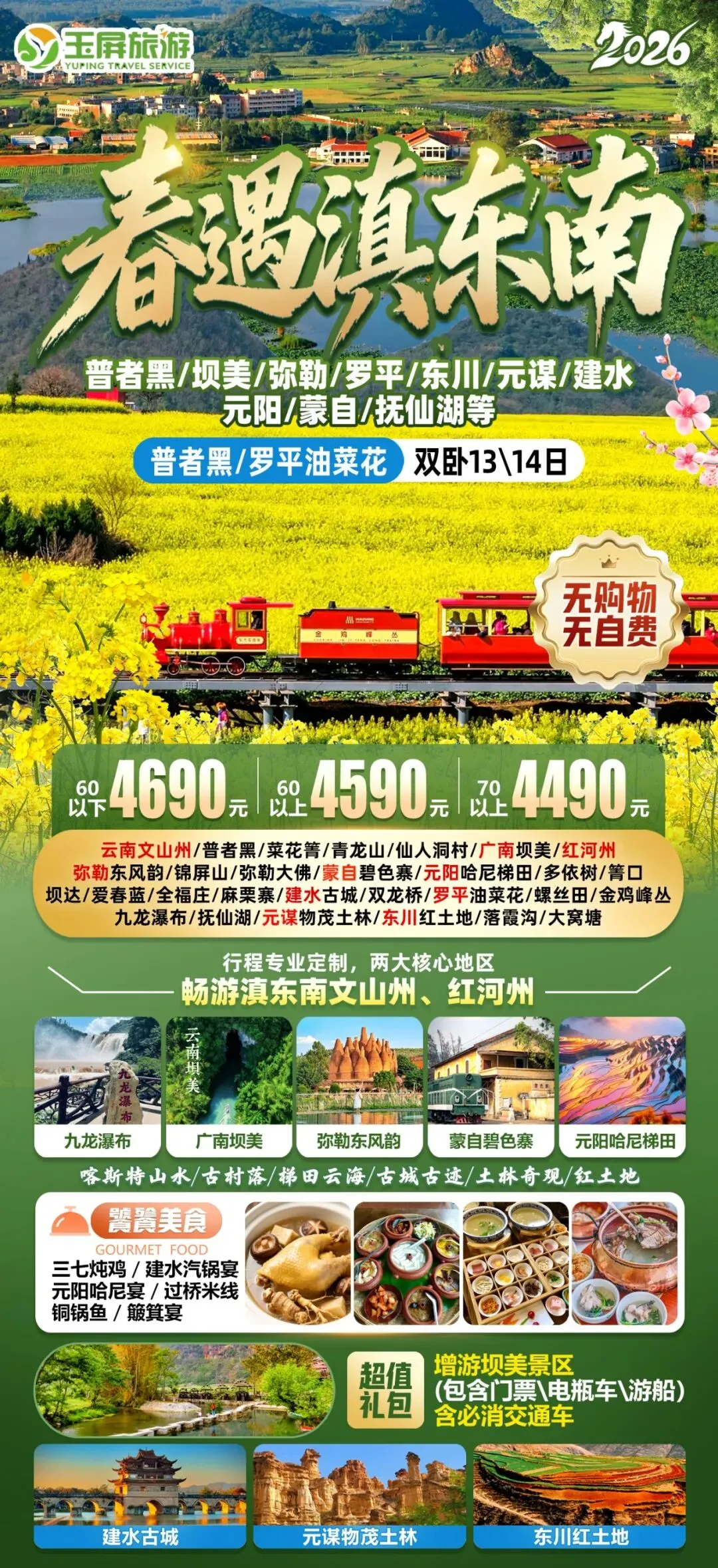 2026年第2期 玉屏旅游自组原创路线合集,春季赏花线路来袭(2月22日更新)汽车康养班线 01.扬州瘦西湖东关街+高邮湖上花海纯玩2日游 199元/人 发班日期:3月8日起花期密集发班 02.皖南大满贯康养8天 发班日期:3月10日、24日活动期间所有年龄所有大门票全免费,火爆热销