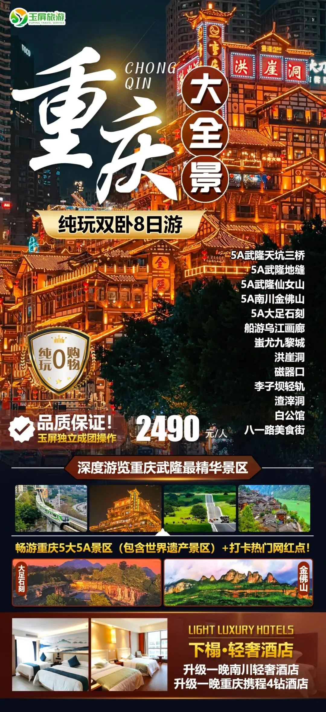 18.重庆全景双卧8日 发班日期:3月8日 15日 纯玩无购物