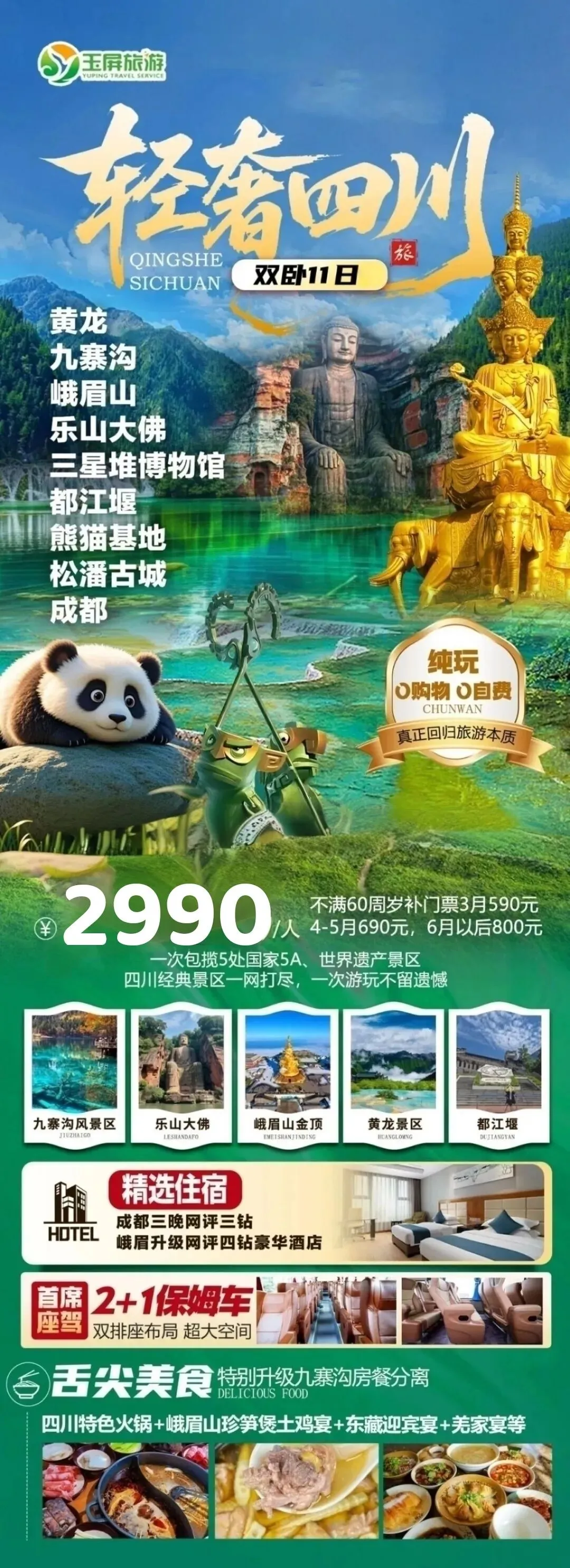 22.轻奢四川全景11日 发班日期:3月22日23日,4月8日,纯玩无购物
