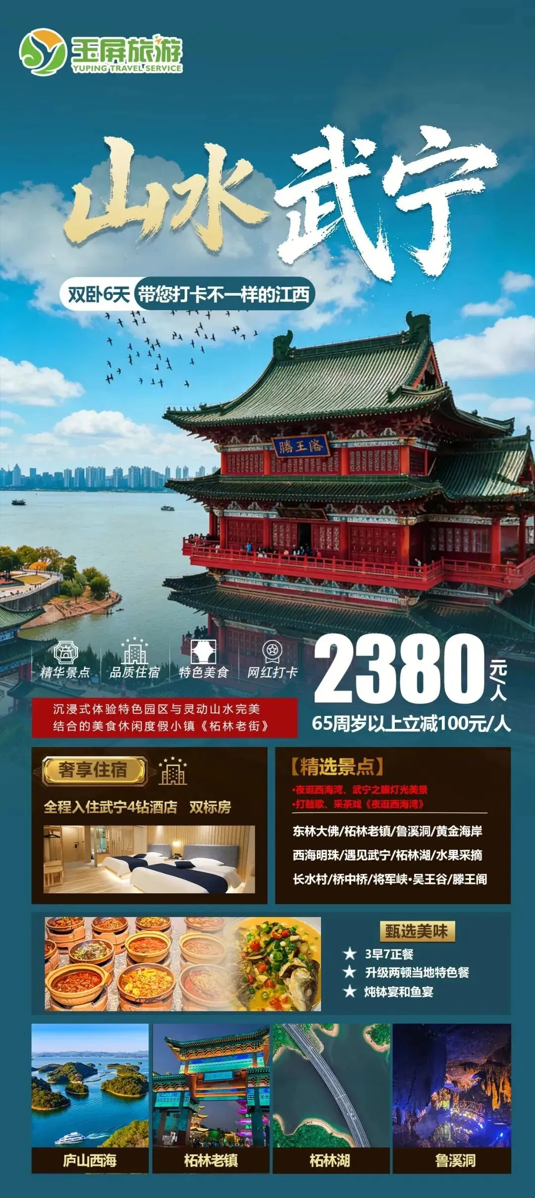 28.山水武宁双卧6日 发班日期:3月10日,纯玩无购物