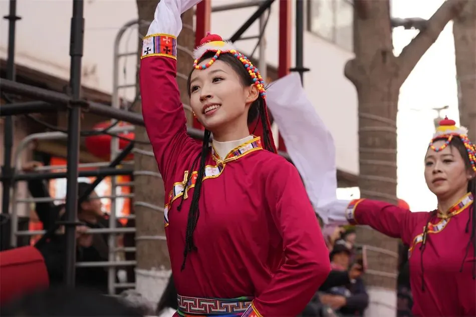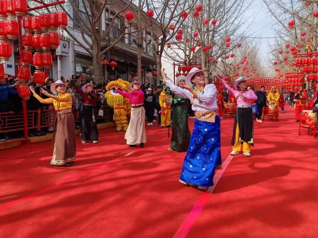 喜庆欢快的舞蹈《开门红》拉开整场演出序幕,灵动昂扬的舞狮腾跃起舞,送上纳福吉祥的美好祝愿;二十条彩带龙凌空飞舞、气势恢宏;欢乐腰鼓《喜庆中国》节奏铿锵、活力满满;《欢天喜地》《黄河从我家门前过》等舞蹈舞姿优美、韵味悠长;妙趣横生的大头娃娃、河蚌表演引得现场观众阵阵欢笑;秧歌《赶大集》搭配旱船,尽显地道传统民俗风情;独具特色的藏舞《最美家乡》为展演增添了别样风采,一个个精彩节目接连上演,赢得全场掌声与喝彩声此起彼伏。