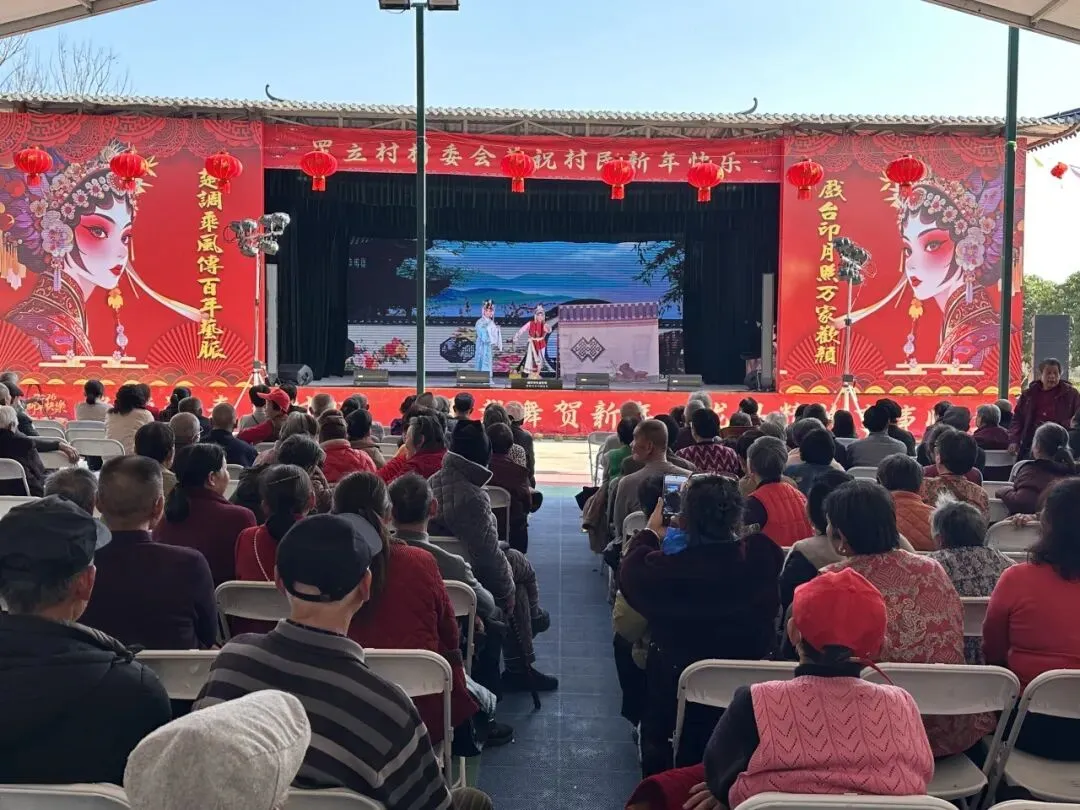 黄陂区楚剧团“木兰村戏”走进东湖高新罗立村,上演《太平村》《站花墙》《打金枝》经典折子戏,服务当地群众近2000人次。
