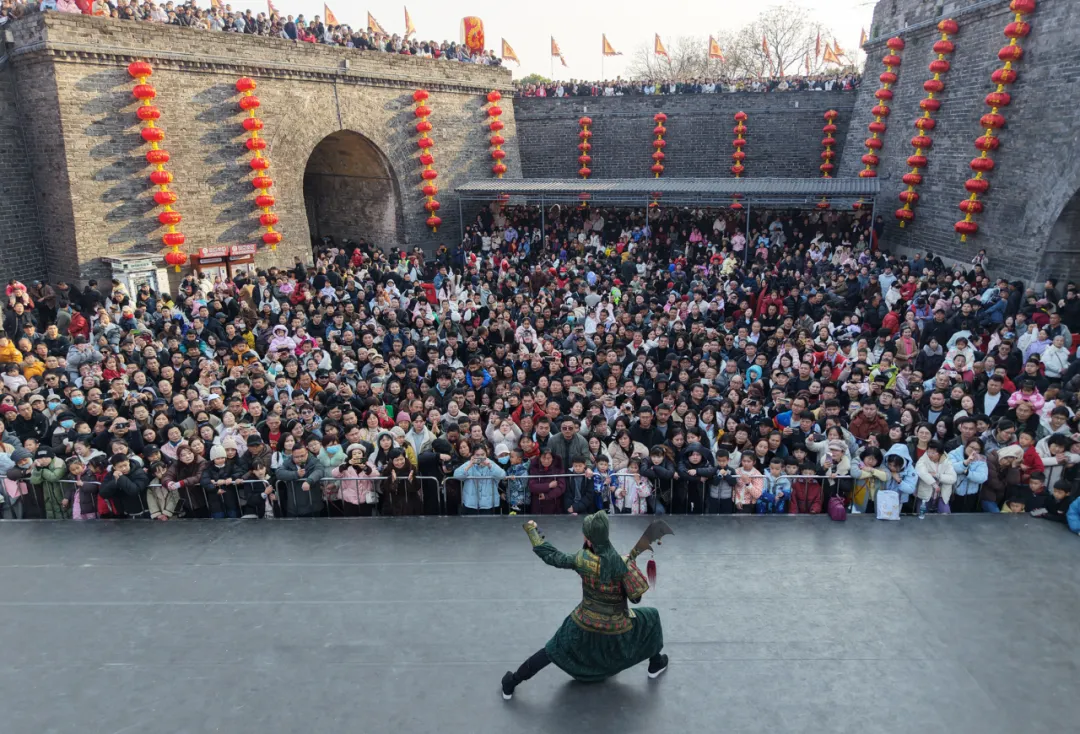 荆州古城春节期间好戏连台,游客嗨翻天。