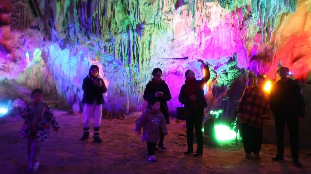 今年春节期间,景区精心推出门票优惠、地质科普研学等特色活动,同时联动黄洞村、周边古村落,打造“溶洞观光+科普研学+乡村休闲”精品旅游线路,吸引大批家庭游客、自驾游客前来打卡体验。为保障游览品质,景区全面优化服务保障举措,增加专职讲解频次,完善安全警示标识,全力让游客玩得安心、游得舒心。