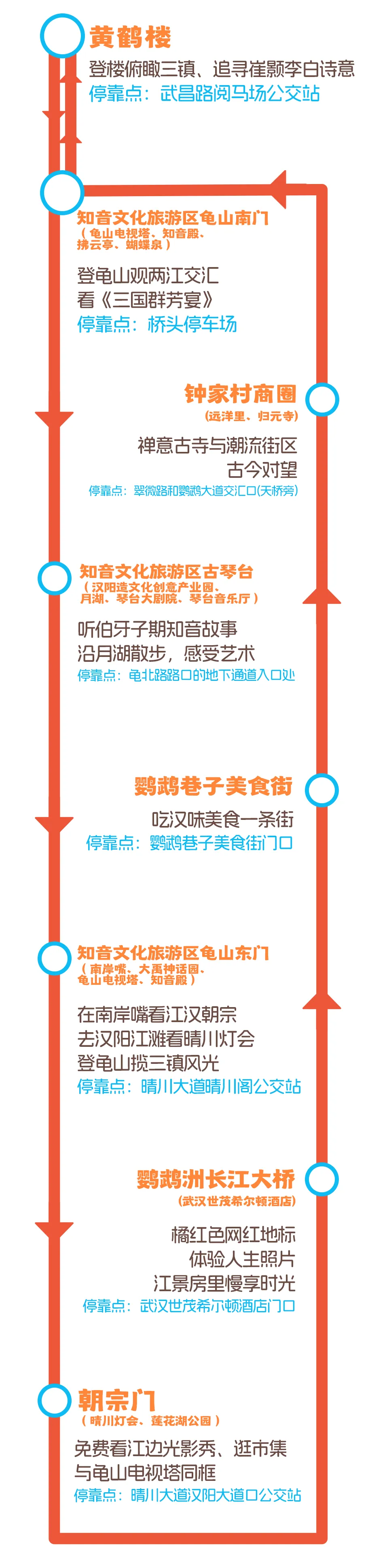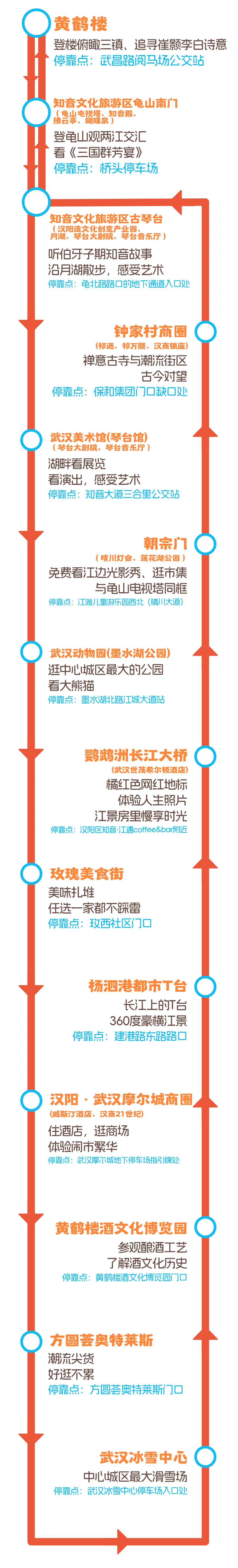 ✅一条聚焦文旅观光:无缝串联龟山、蛇山、武汉长江大桥为重点的“一桥两山”核心景观与热门地标。