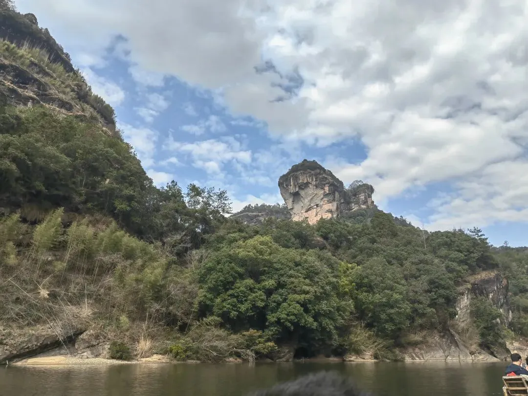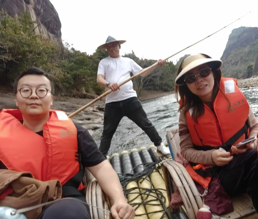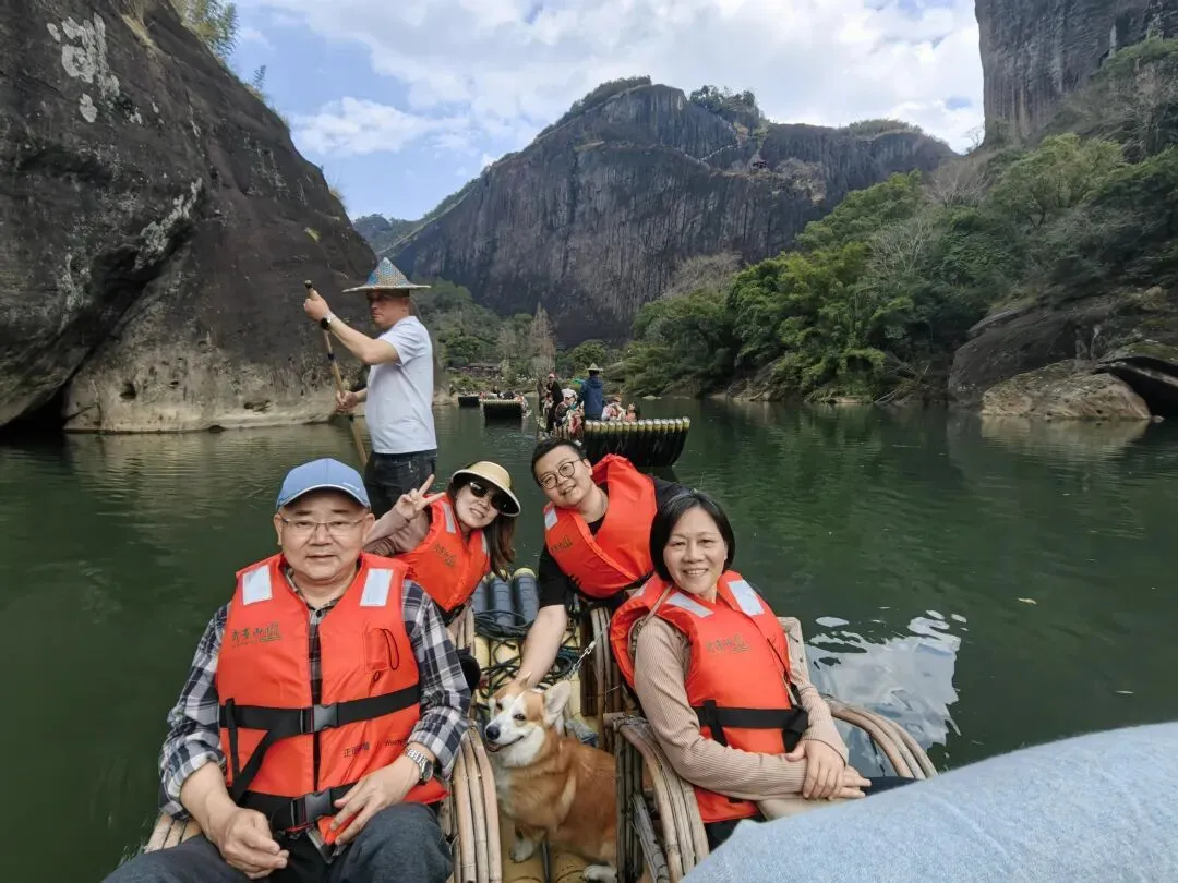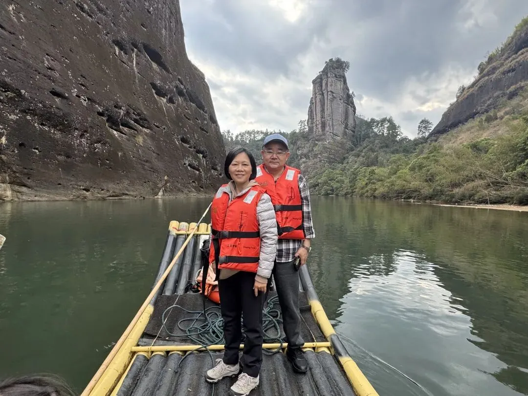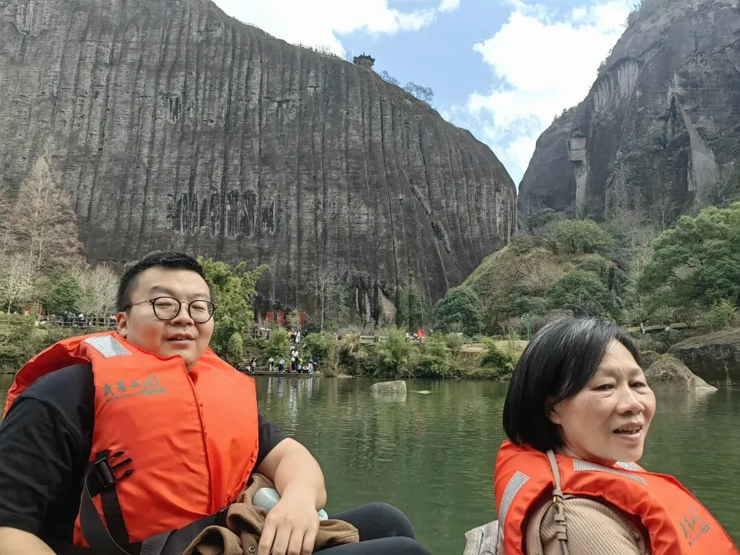 次日清晨,女儿一人先行探路,登天游峰,中途遇雨返回。下午,我们直奔心心念念的九曲溪竹筏漂流。这条被誉为“中国最美溪流”的碧水,是武夷山水最动人的灵魂。坐上古朴竹筏,艄公轻撑竹篙,筏身便悠悠驶入画卷之中。从九曲至一曲,一曲一景,一弯一画。
