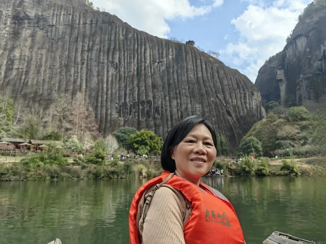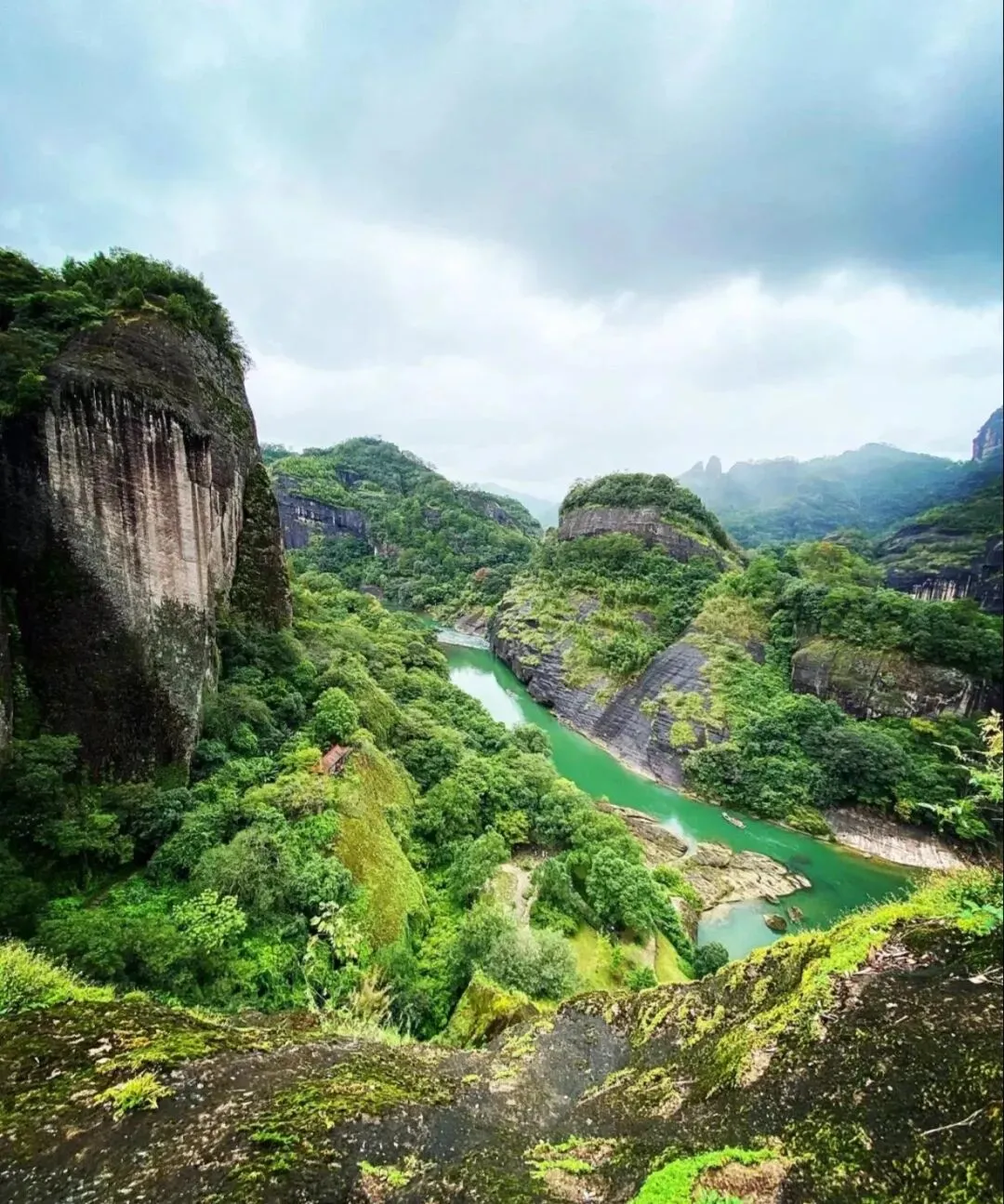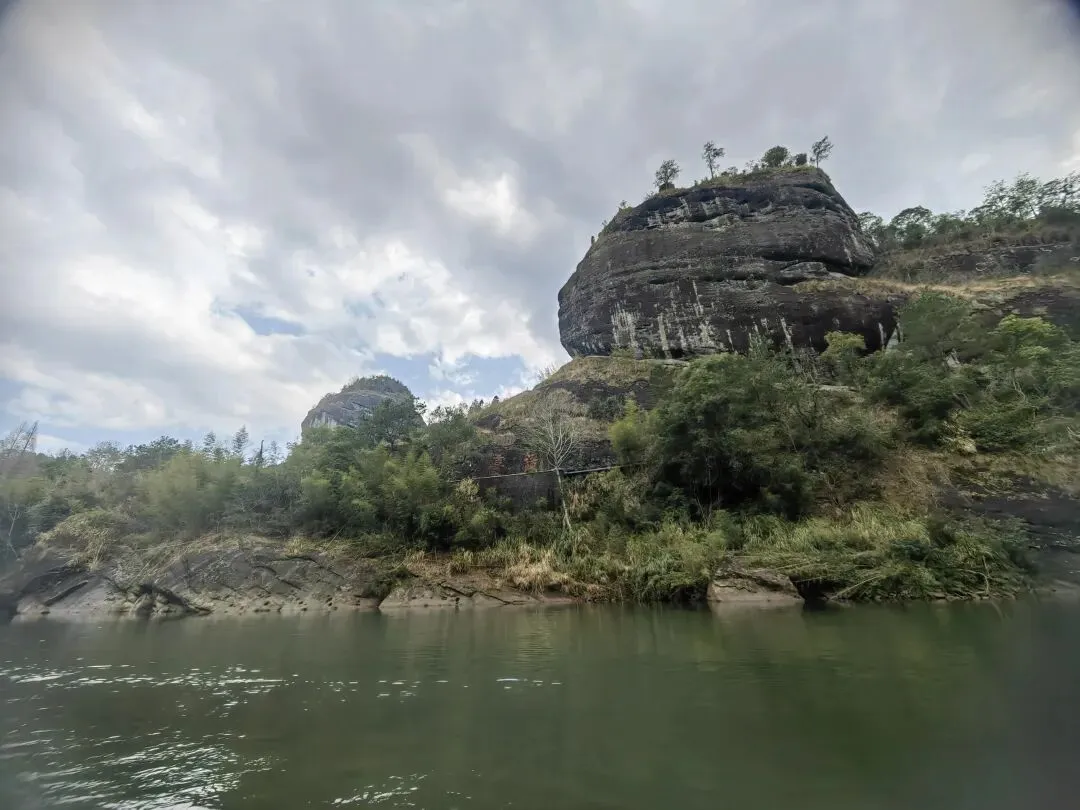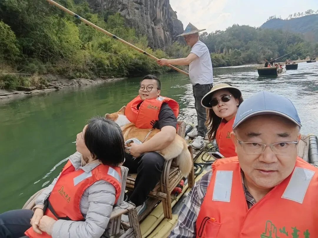 次日清晨,女儿一人先行探路,登天游峰,中途遇雨返回。下午,我们直奔心心念念的九曲溪竹筏漂流。这条被誉为“中国最美溪流”的碧水,是武夷山水最动人的灵魂。坐上古朴竹筏,艄公轻撑竹篙,筏身便悠悠驶入画卷之中。从九曲至一曲,一曲一景,一弯一画。