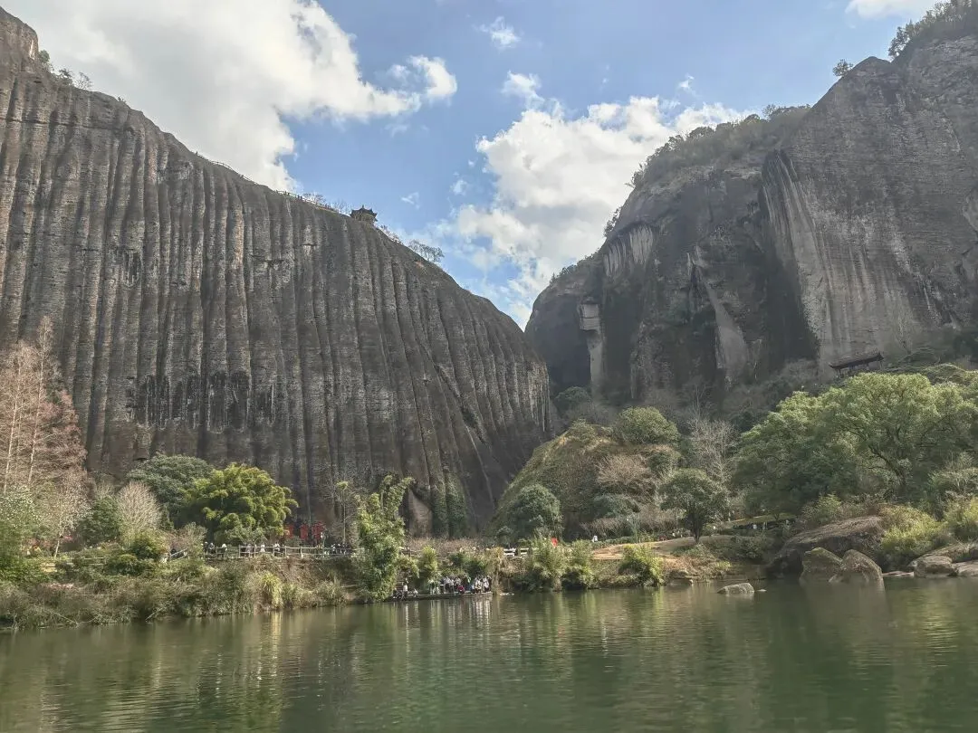 结束漂流,我们漫步武夷宫与宋街。武夷宫古朴厚重,红墙黛瓦间藏着岁月沉淀的韵味;一旁的宋街青石板铺路,古建错落,烟火气与古韵交织,游人笑语盈盈,处处透着新春的热闹与温馨。午后我们前往一线天右侧,在狭窄幽深的岩壁间穿行,感受大自然的鬼斧神工,惊险与奇妙并存,为旅途添上一抹生动趣味。