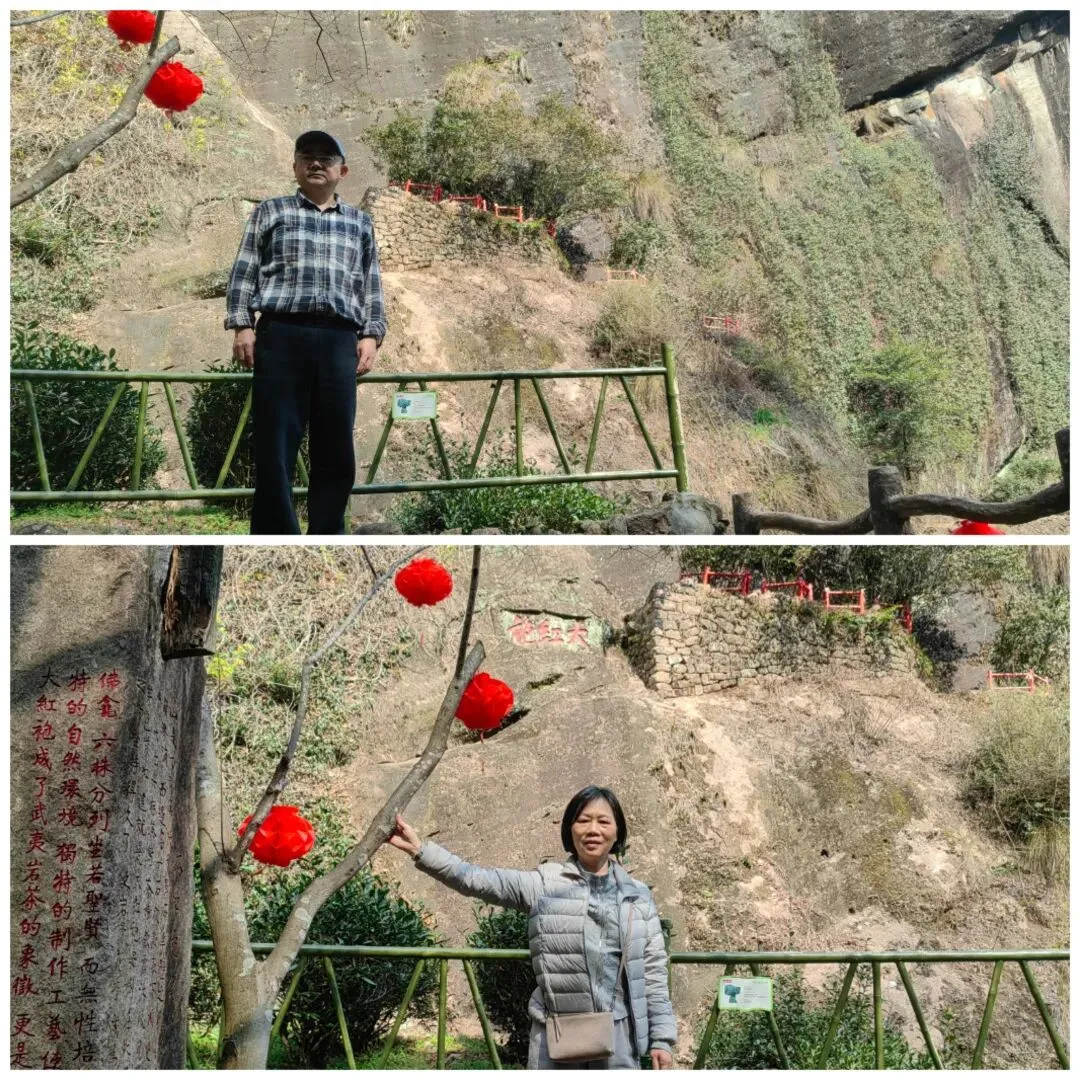2月15日上午,我们从北入口进入景区,踏上意境清幽的岩骨花香漫游道。从大红袍景区出发,途经流香涧、飞来岩、玉柱岩、慧苑寺、鹰嘴岩、天车架古崖居遗址,一路行至章堂涧与水帘洞。步道蜿蜒在茶园溪谷之间,沿途茶树层叠青翠,石刻随处可见,野生竹林郁郁葱葱,空气清新得沁人心脾。