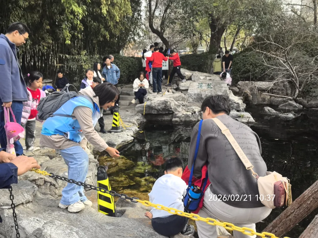 2月21日(正月初五),济南旅游啄木鸟文明旅游主题宣传活动在五龙潭景区如期开展。志愿者们为过往游客耐心讲解文明游览礼仪并提供旅游咨询服务。同时,志愿者开展流动劝导服务,及时引导游客规范游览行为,对踩踏草坪,擅自投喂,跨越护栏等行为进行劝阻,现场还进行了“有奖问答”趣味互动环节,吸引了不少市民游客积极参与,在轻松的氛围中传递文明出游理念,让文明旅游成为新春出游的新风尚。