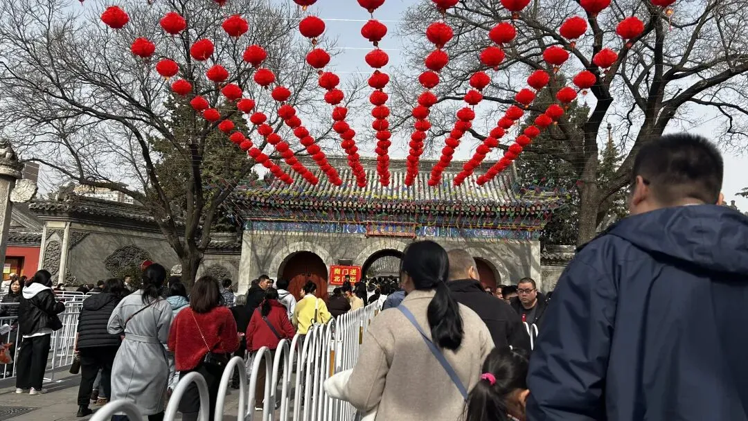 于是,带着一家子,开启了白云观之行。导航的路线没让进,工作人员指的路线,只看到长长的队伍。