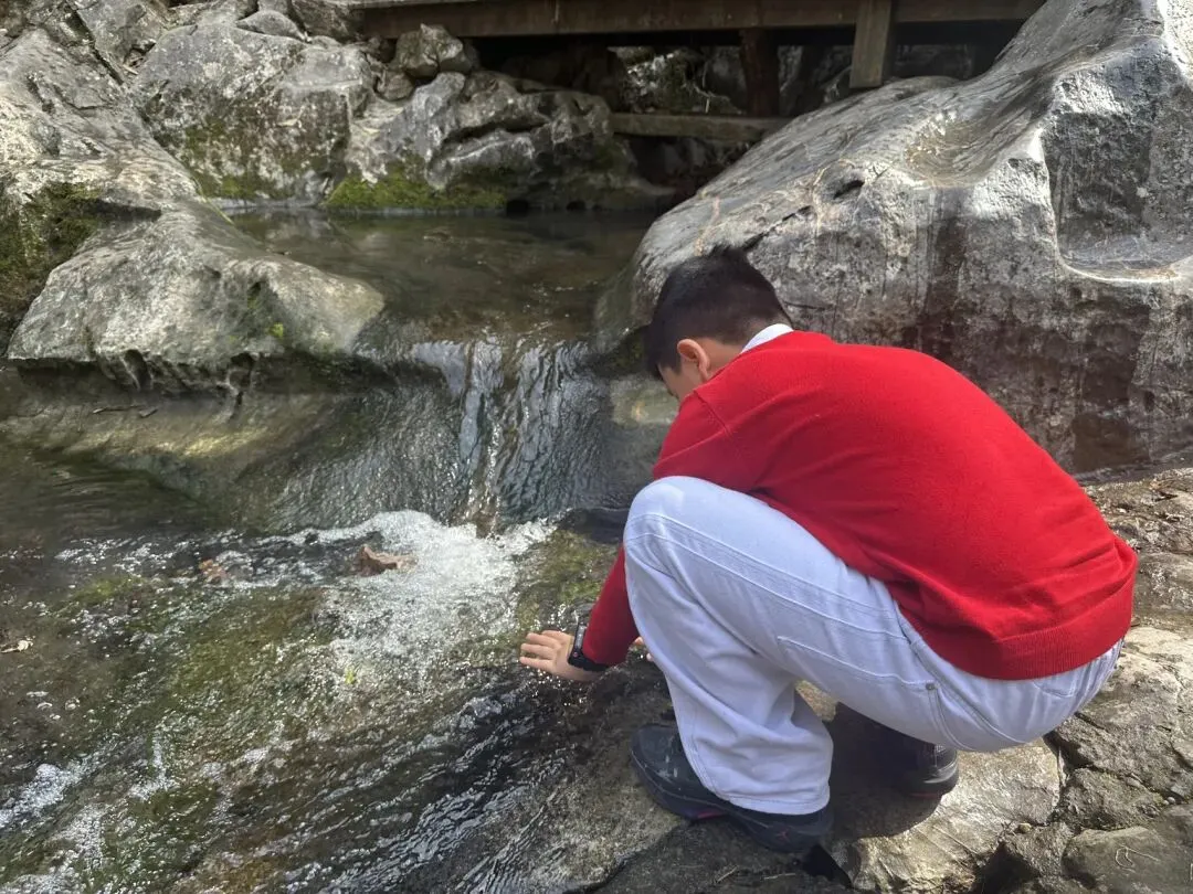 有两位同学是坚决不爬山,哪怕海拔只有一百多米的飞来峰,哪怕这山上遍布着各朝各代的石窟造像,是整个景区的精华所在,他俩走了不到俩小时就累了,直接往亭子里一坐,拽都拽不动😂, 小雨同学一开始也挺抗拒的,哄了半天才勉强答应跟我爬山。