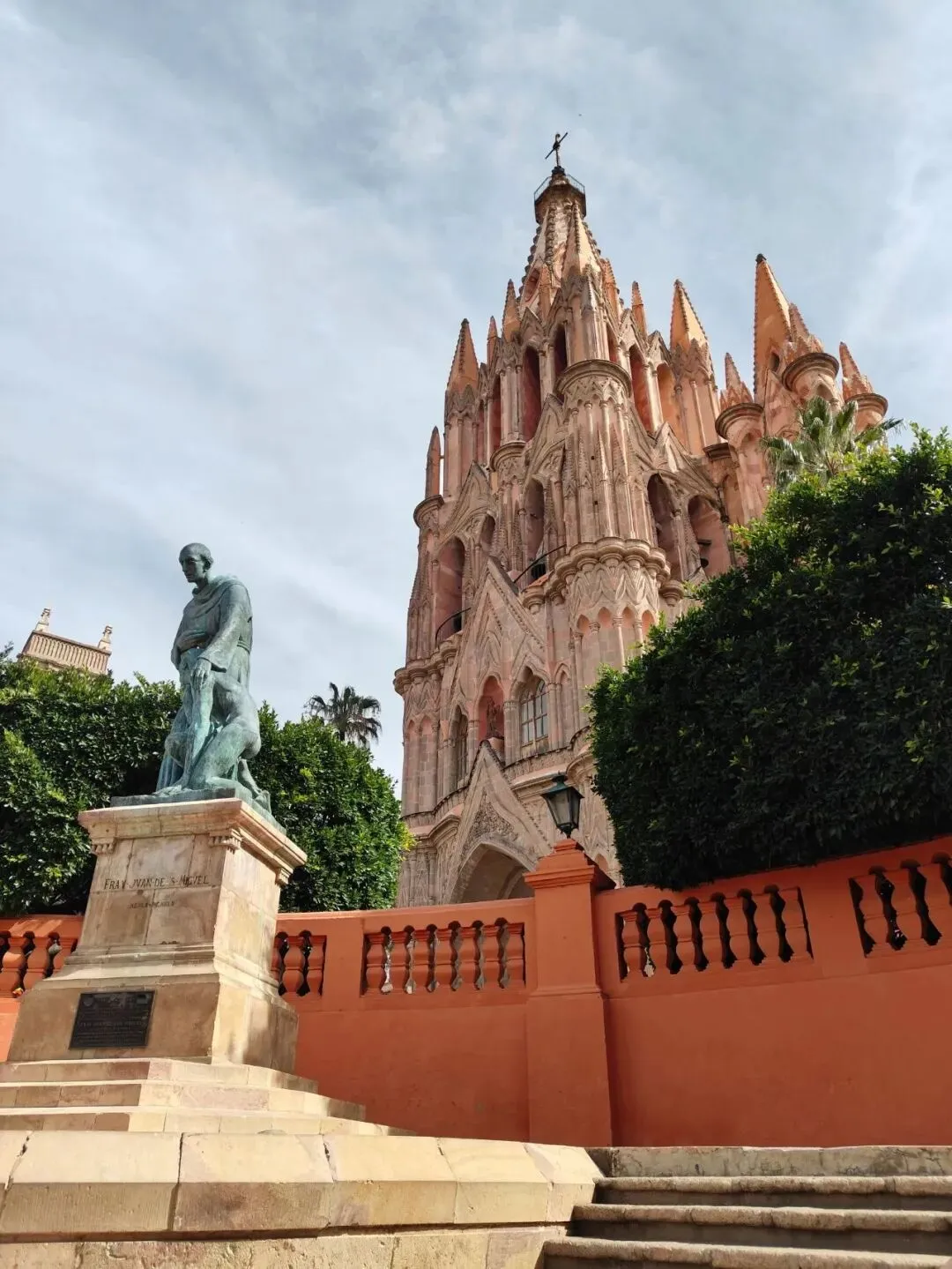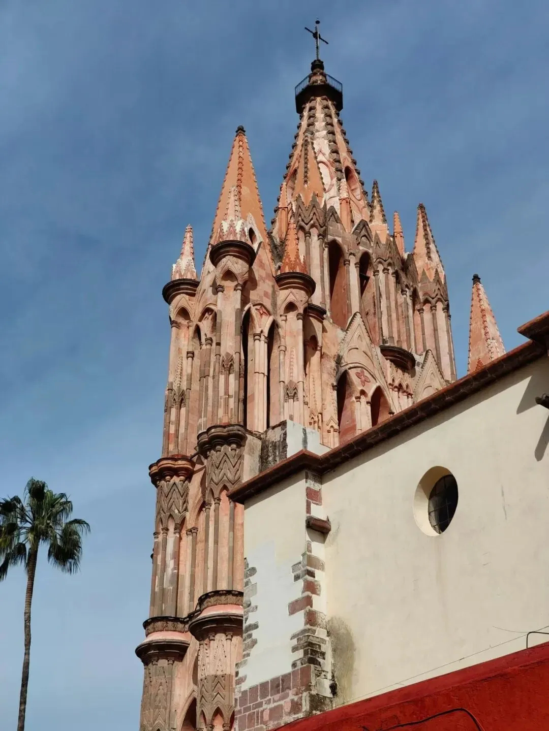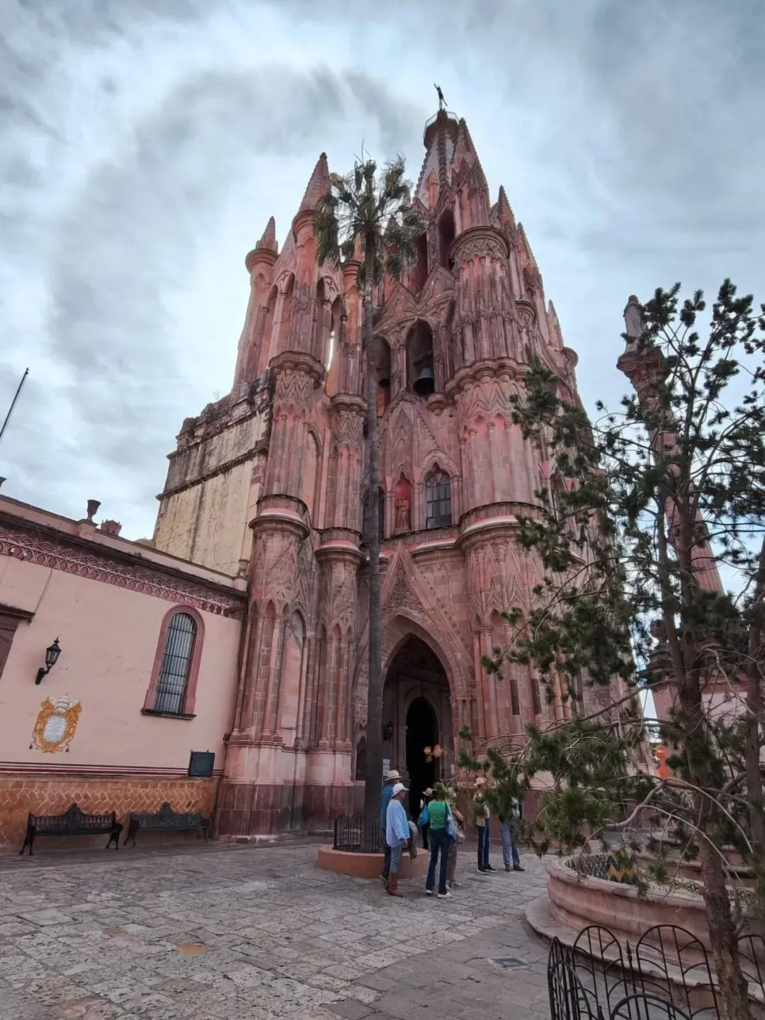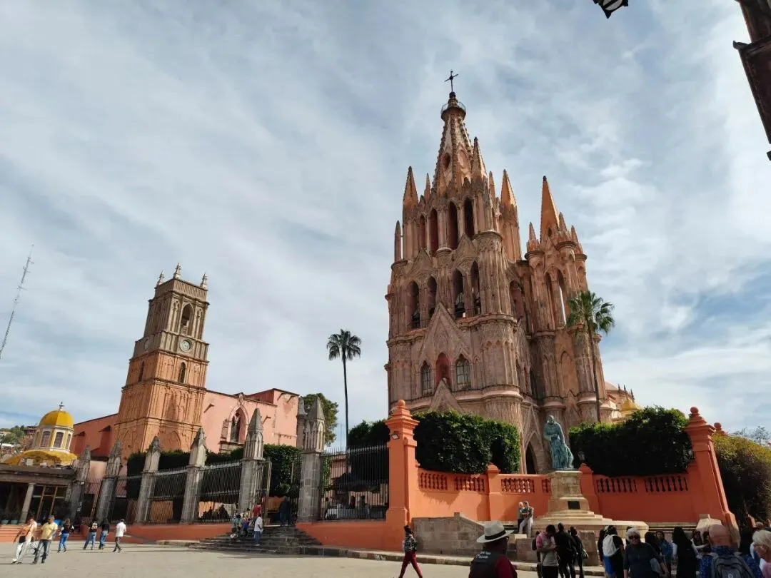 圣米格尔阿联德市的主教堂,又称粉红色教堂。 【圣米格尔教区教堂】,这座教堂粉红色“结婚蛋糕”式的高塔非常奇特而醒目,是由当地的原住民石匠在 19 世纪末设计的。