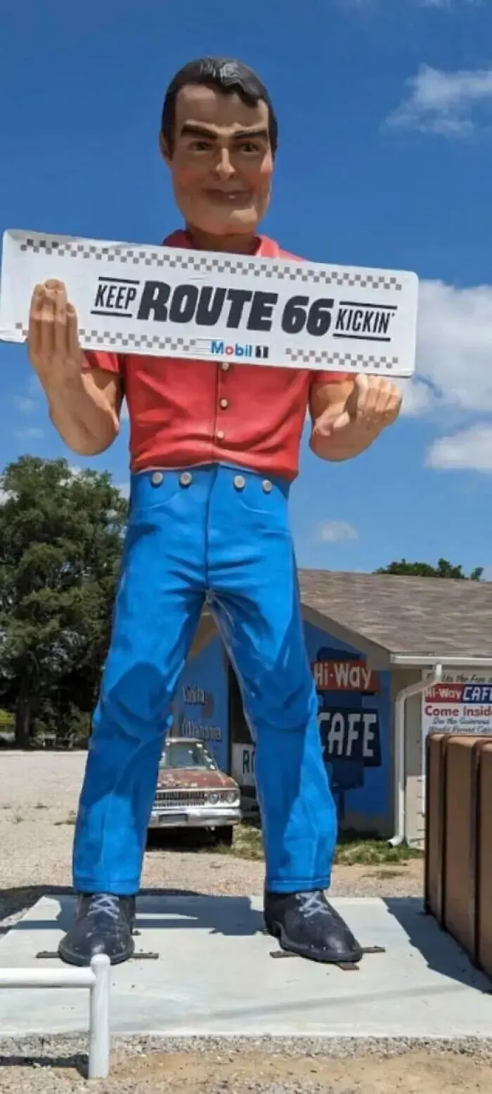 13、大比尔拖着他的行李箱,出现在俄克拉荷马州维尼塔66号公路旁的公路咖啡馆。他现在已经搬到隔壁的西部汽车旅馆了。