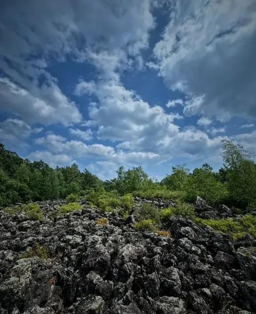 石海是五大连池最容易被低估的地方,很多人觉得这就是一片乱石头,走走就完了,但你真仔细看那些石头缝里长出来的树,那些扭曲的树根怎么在熔岩的裂缝里找到土壤,怎么在极端环境下活下来,你就能理解生命力这个词到底是什么意思。这里的翻花熔岩和喷气锥保存得特别完整,你能看出来当年岩浆喷发的不同阶段,先是流动形成的绳状熔岩,再是后期喷发形成的渣状熔岩,这种地质教科书级别的现场,全世界没几个地方能看到。