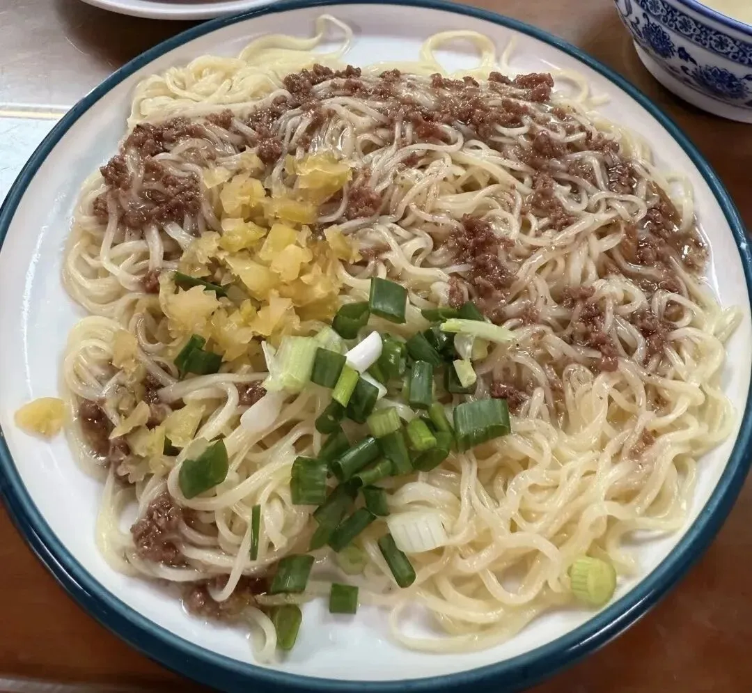 特色牛肉拌面,小份也是挺大一盘,现拉的面条爽滑筋道,裹满了肉酱、榨菜等等,简直不要香迷糊了。