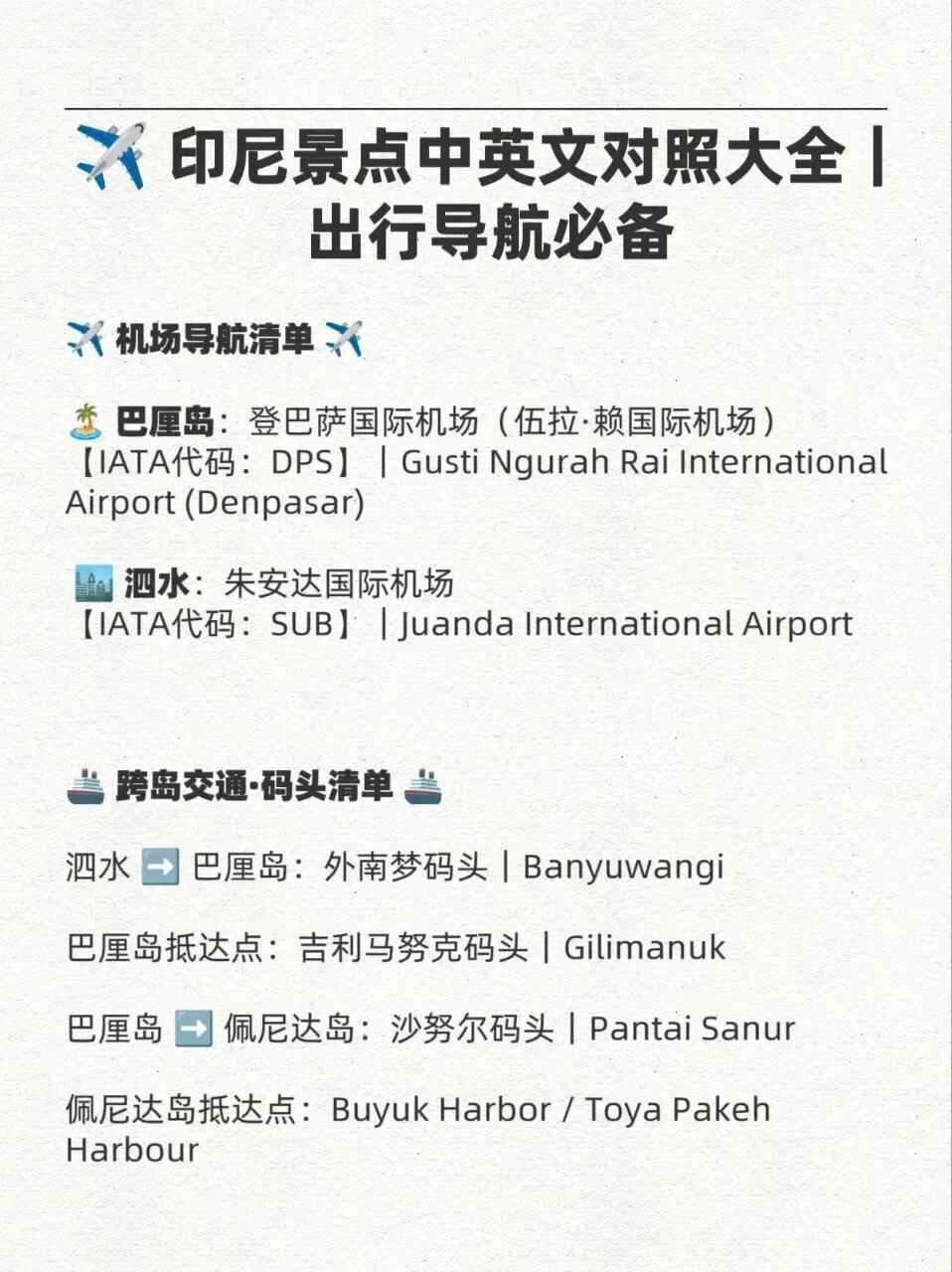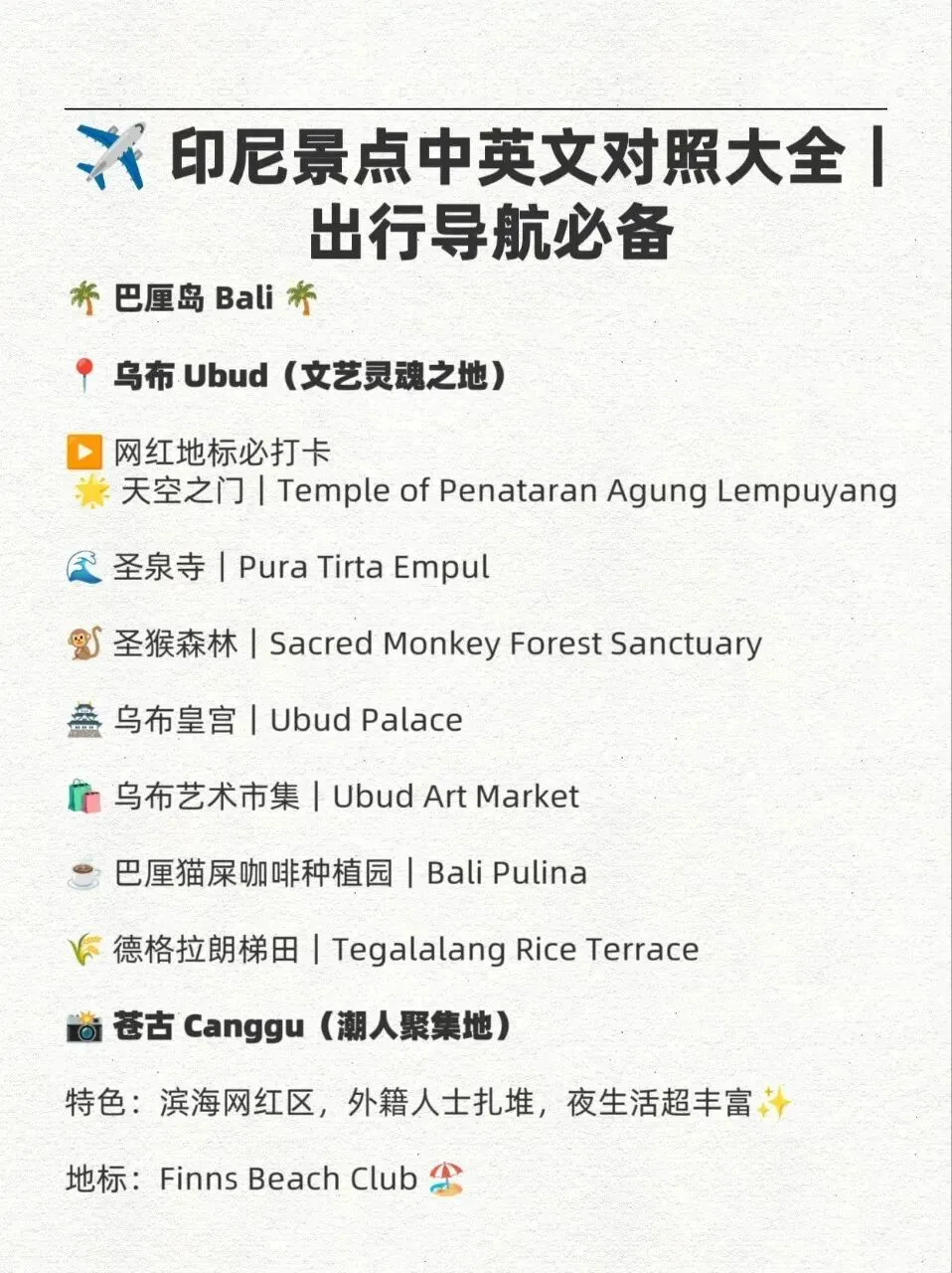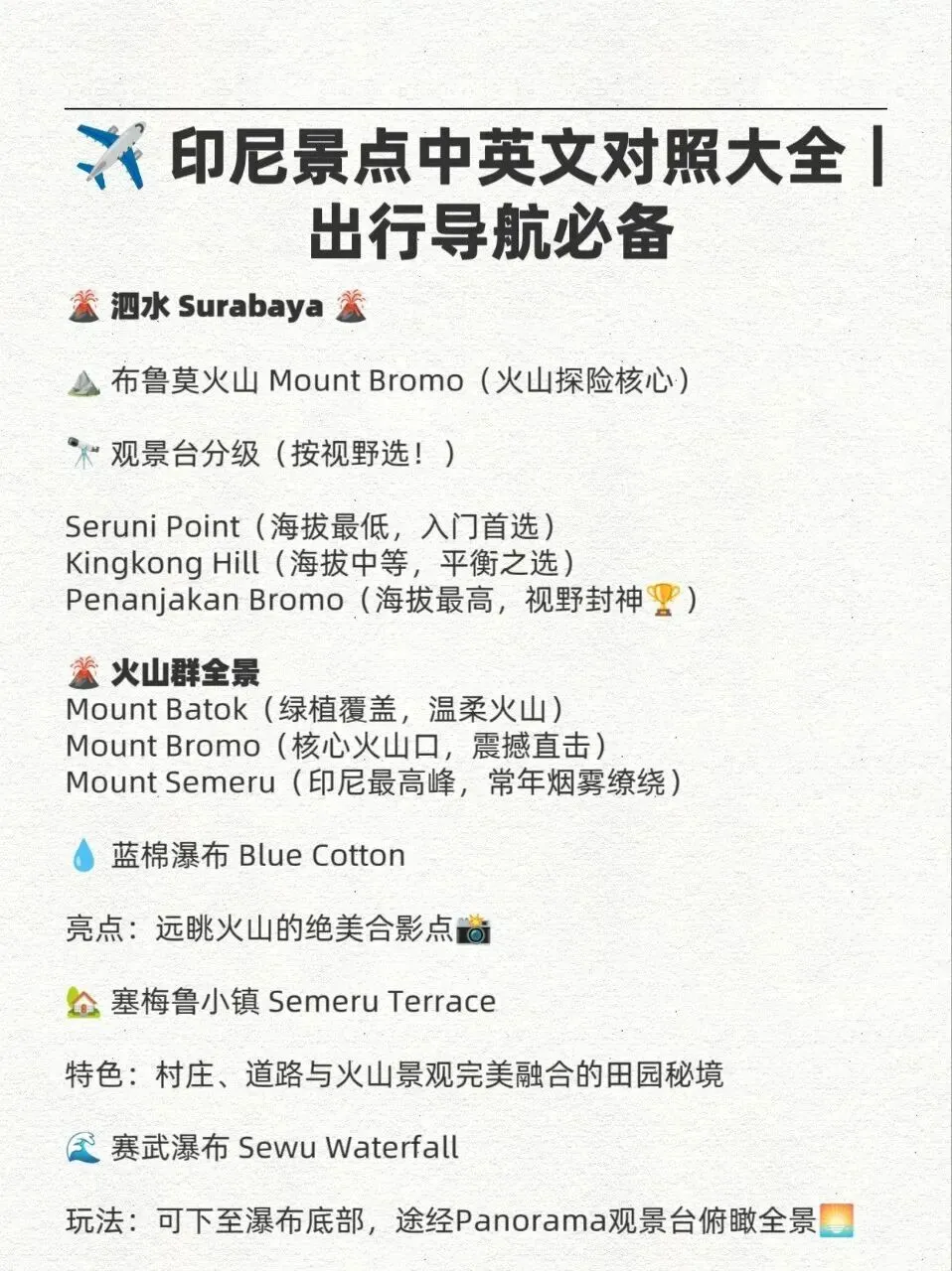 【印尼特色】印尼景点中英文对照大全!收藏肯定用得上