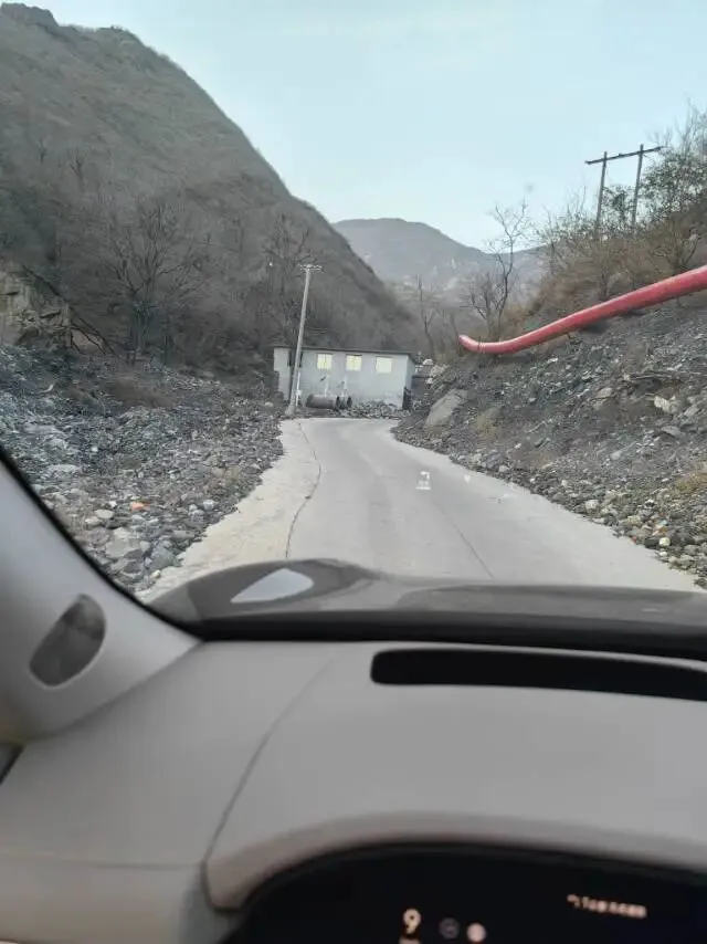在此停留放水,坡下河水潺潺,对面山上有一个山洞。进入贾金路之后,很少能遇到车了,在靠近于家塌五公里内,这是我遇到的唯一一辆车。