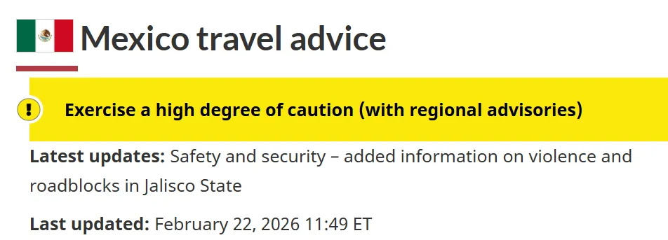 加拿大外交部提醒所有前往哈利斯科州及普埃尔托瓦拉塔的加拿大公民,务必遵守当地政府指示,避免前往偏僻区域,夜间尽量减少外出,确保自身安全。
