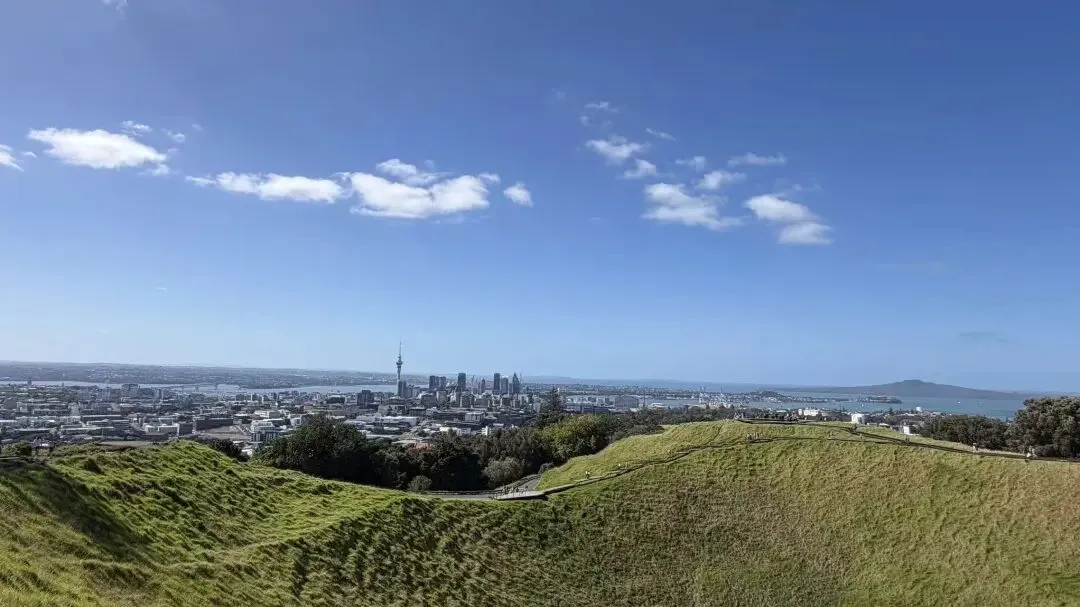 吃好午饭,酒店电话说3点的住宿12点可以入住,于是小歇到3点,第一站看某人丈量过的伊甸山(Mount Eden)。