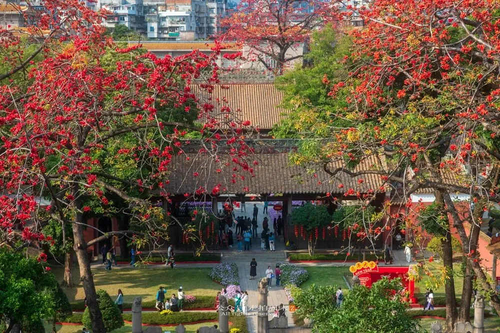 有人说,红棉花开是早春的一场浪漫,而在我看来,并非浪漫,而是生活热情的唤醒。红色代表的是激情与活力。 这是在农讲所南面星火1962商厦4楼观景平台所拍到的画面。现场看到,景点内已出现大批拍花人。