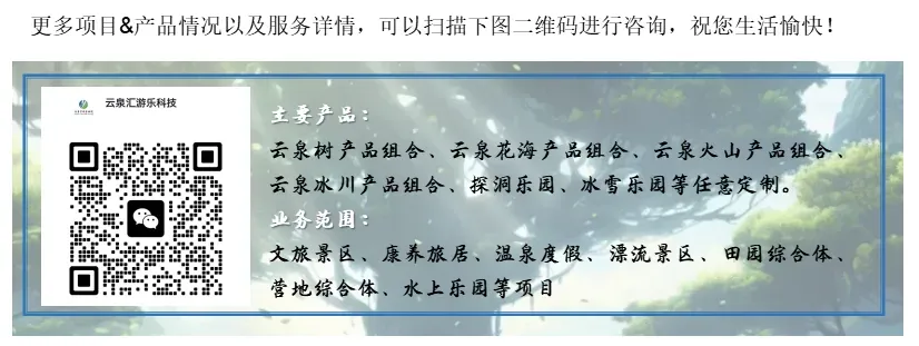 广州云泉汇游乐科技有限公司,作为云泉汇文旅集团旗下的成员企业,始终以“让老项目焕发新活力”为使命,专注于为文旅项目打造“引流利器”,提供从策划到落地的一站式解决方案。我们深知文旅行业面临的季节性挑战,因此致力于通过创新设计和科技研发,帮助项目实现“淡季不淡,旺季更旺”的目标。凭借20年的行业深耕,我们积累了深厚的文旅洞察力,构建了涵盖策划、设计、研发、运营的全产业链服务体系,并依托强大的研发能力,持续推动项目向主题化、科技化方向转型。在文旅产业提质升级的浪潮中,云泉汇游乐科技不仅是参与者,更是赋能者,助力每一个项目突破瓶颈,焕发新生。如果您有文旅相关需求,可联系楚先生电话:137-1907-5655(同微信号)(同微信号),李先生电话:159-2045-1988(同微信号),张先生电话:152-7286-5888(同微信号)