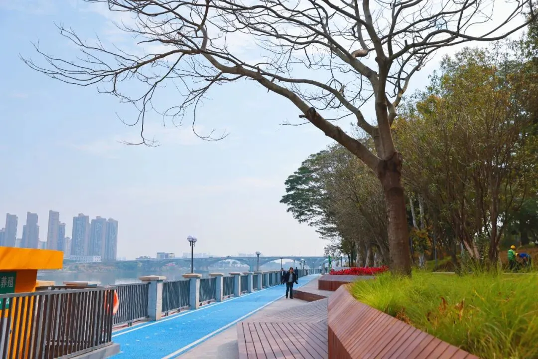 日前,石碣镇东江北干流沿岸综合整治工程基本完工,涌口公园作为其中一部分已正式开放。临江而建的望江平台、开阔的广场与蜿蜒的碧道,随手一拍都是自带氛围感的江景大片。井然有序的公园步道,串联起多样化的景观游线,有灯光球场、儿童乐园等活力空间,运动健身、亲子玩乐两不误。