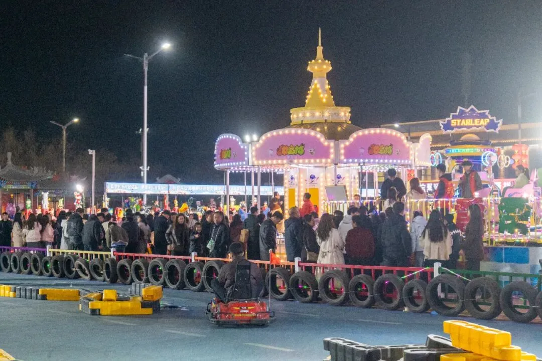 与景区一脉相连的槐树里商业街区,以“白+黑”沉浸式模式持续点燃近郊游热情,成为周边游客的核心打卡地。白天,街区内沉浸式街区巡游,根祖文化广场戏台上的新春歌会、传统戏曲等活动、表演精彩连连。夜幕降临,华灯照亮整个街区,《新春烈焰秀》《槐风古乐》等表演轮番亮相,让近郊游游客沉浸式体验夜游乐趣。街区内的美食铺位香气四溢,烙馍、锅贴、炒凉粉等晋南特色小吃备受青睐,游客们边吃边逛,在烟火气中感受别样年味。来自临汾的赵先生感慨:“我们离得近,孩子白天没玩够,等晚上看完表演再回去。”