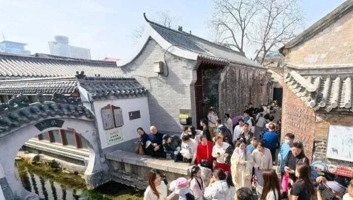 春节假期虽已临近尾声,但济南老城区的网红打卡地热度不减。2月21日,在老城区仅有2米多长的起凤桥,众多外地游客慕名而来,依次坐在河边或站在桥上,以标志性的月亮门为背景,将青砖灰瓦、光滑的石栏与石板路一同纳入镜头,记录下这独特的泉城韵味。