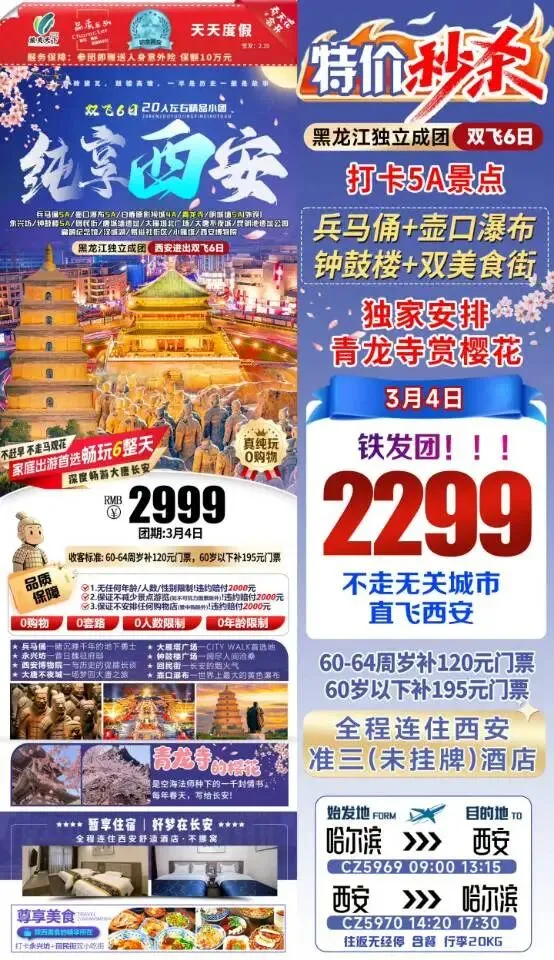 【肇东纵横旅游春季团】3月4日纯享西安6日游 黑龙江独立成团