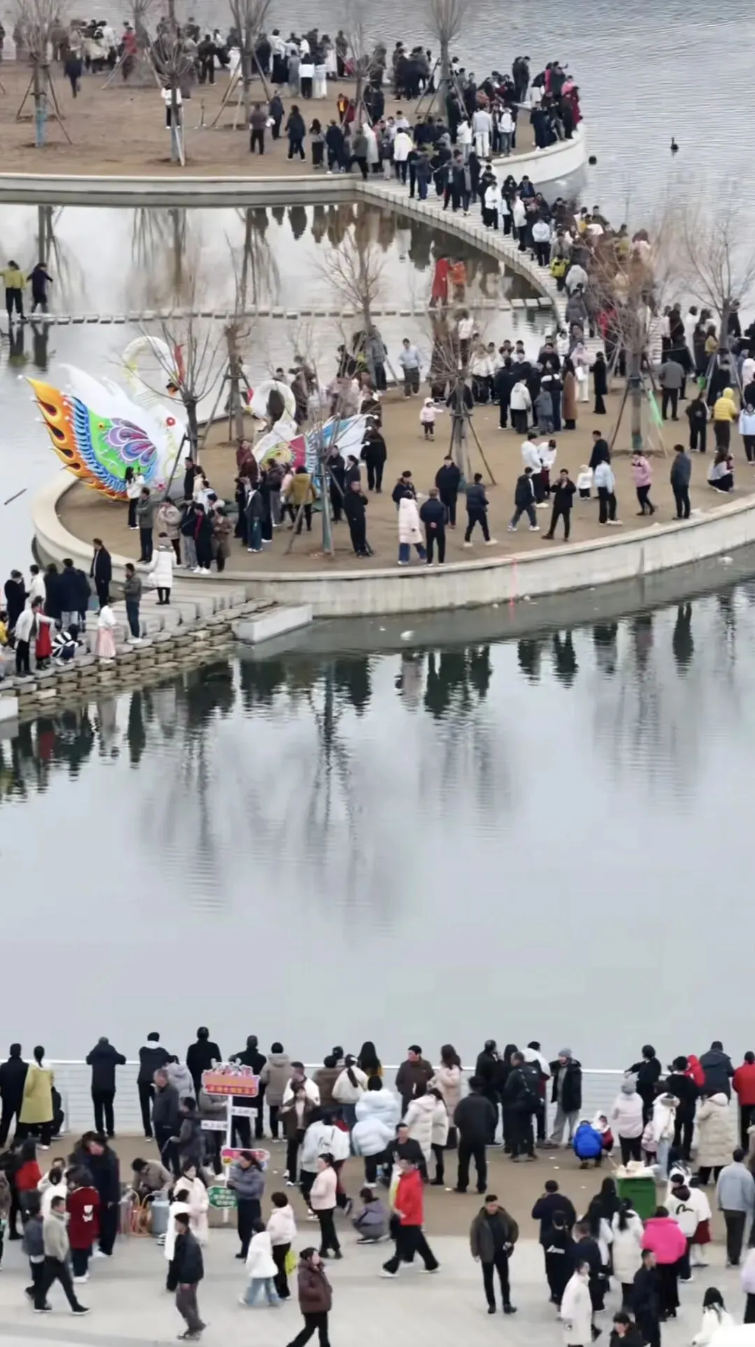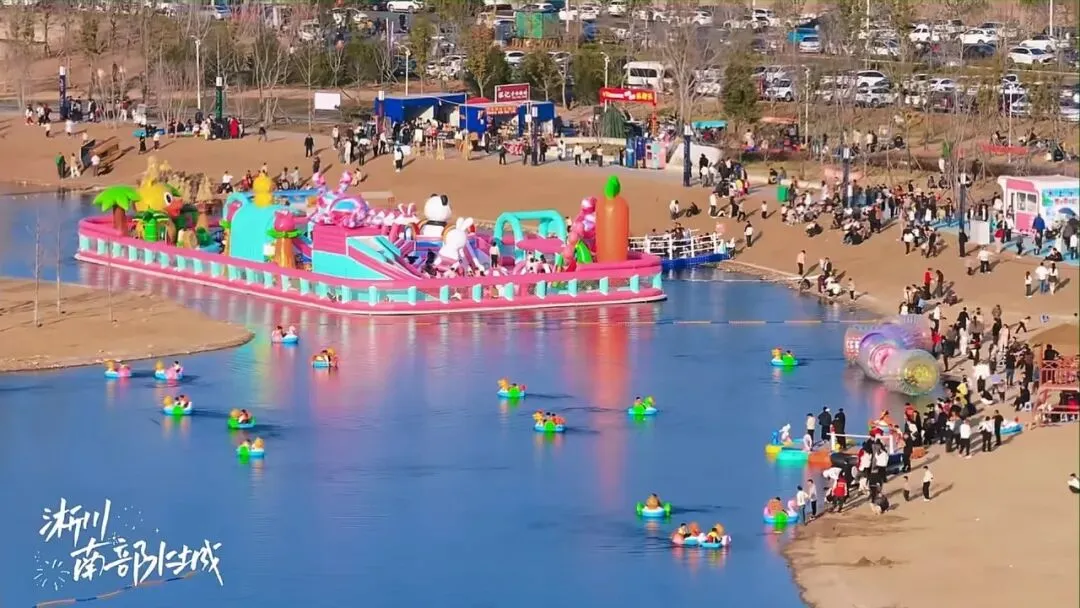 南部水城游人如织、热闹非凡。水上云梯成为热门打卡点,游客们驻足观景、与红嘴鸥互动合影,随手一拍都是好看的照片。这里的非遗表演超精彩,民俗展演轮番上演一系列活动让年味更浓。