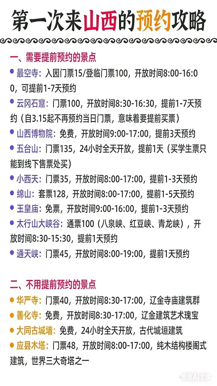 您现在的位置是:首页 > 旅游攻略 > 正文 旅游攻略 【山西旅游】第一次来山西的姐妹们,码住这篇攻略 admin2026年02月23日 10:04:23旅游攻略11 【山西旅游】第一次来山西的姐妹们,码住这篇攻略 转载请说明来源于"旅荐网",部分内容转载自网络,如有侵权请联系qlwl@foxmail.com删除 本文地址:https://www.15386.cn/post/120401.html 上一篇 青秀山景区 #青秀山景区打卡 下一篇 五台山景区:精细化服务为游客“暖心护航” 相关文章 新疆宝玉石,奇石旅游攻略来了—你心动了吗? 2026年南通旅游攻略图,自由行超全指 浚县出发|清明假期|旅游线路 被自己做的三亚旅游5天4夜攻略震惊到了! 男友做的泉州旅游地图攻略��不绕路路线图 日常逃离桂林计划!(详细旅游攻略) 没开玩笑!【新西兰北岛】旅游一定要看这篇攻略!! 世界地质公园雁荡山:大龙湫景区 旅游攻略 游览路线 景点介绍 4月新疆旅游最全攻略|9大精华景点+路线,带你解锁限定春天! 3天2夜,解锁“保定旅游保姆级攻略”!2026保定清明寻春深度游 发表评论 取消回复 评论列表 这篇文章还没有收到评论,赶紧来抢沙发吧~