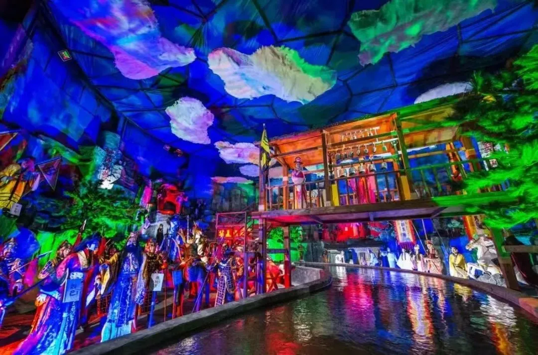 景区在项目设置上,采用时光穿越的手法打造了独具特色的时光隧道;融合技术建成亚洲高的悬挂式4D影院;还原了原始部落场景,建设了全国一个原始的狩猎场;项目设置将原始文化和现代游乐项目有机结合,涵盖了历史文化、神话传说、现代科技、综合表演等多方面,为广大市民休闲娱乐打造出一个崭新的平台。