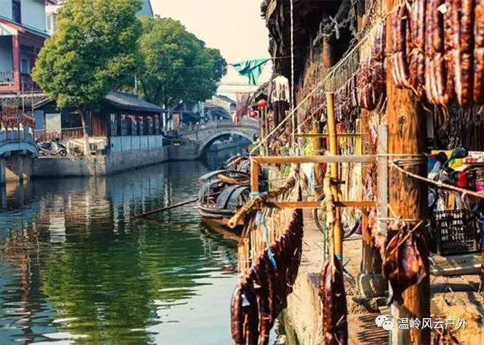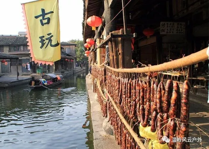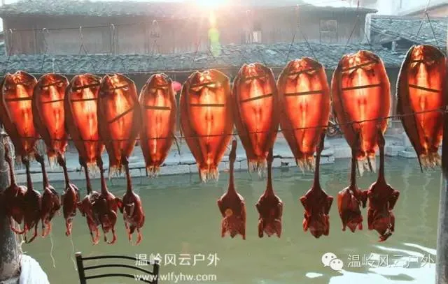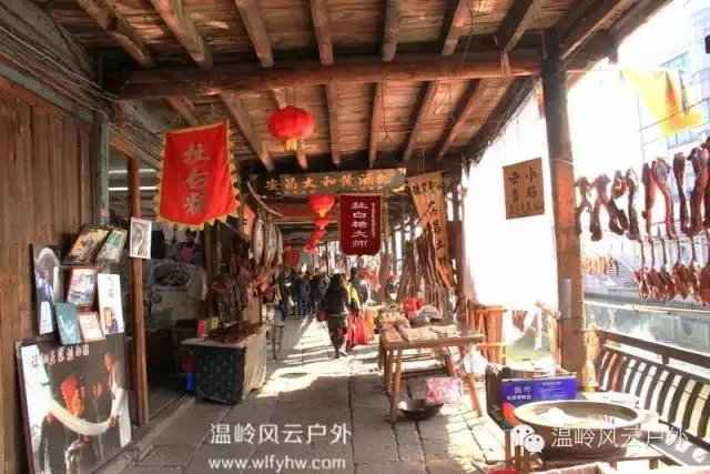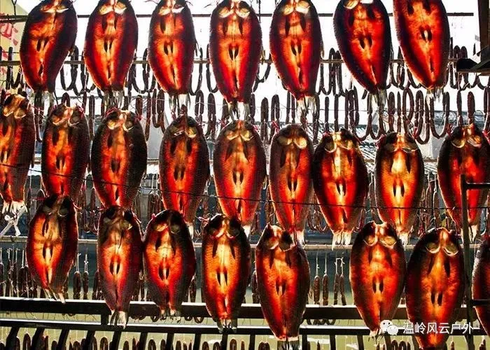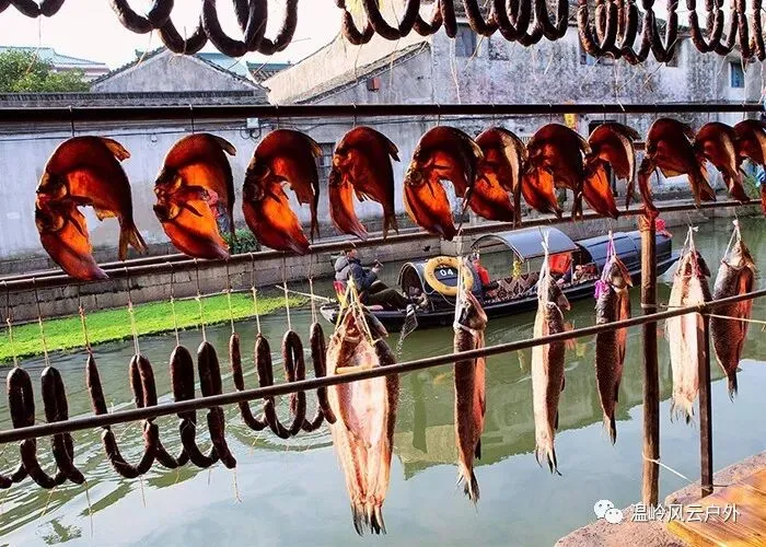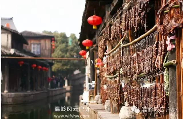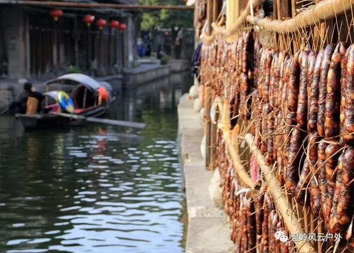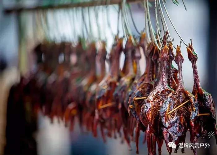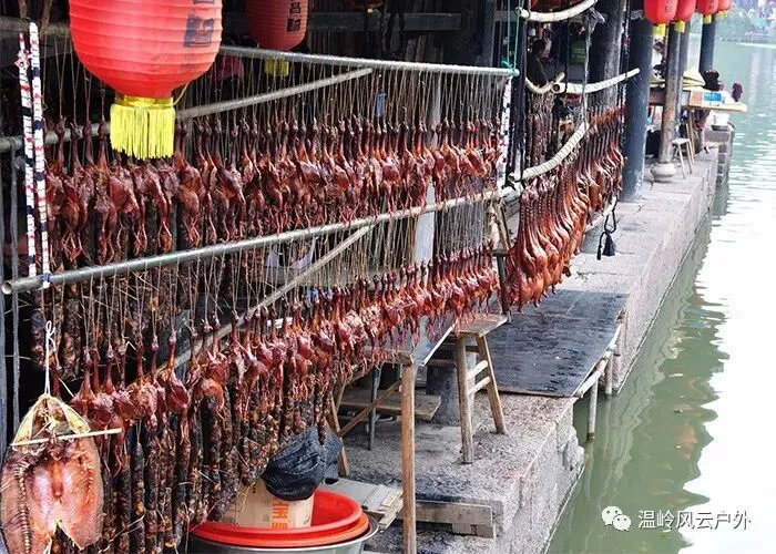 一脚踏进古镇里,扑面而来的便是一股浓浓的独特的腊货的味道,可以看见狭窄的街巷两边,家家户户的门前廊下扯起一根根的绳子或搭起一个个竹架,上面密密麻麻的腊肠、鱼干、腊鸡、腊鸭、腊肉...
